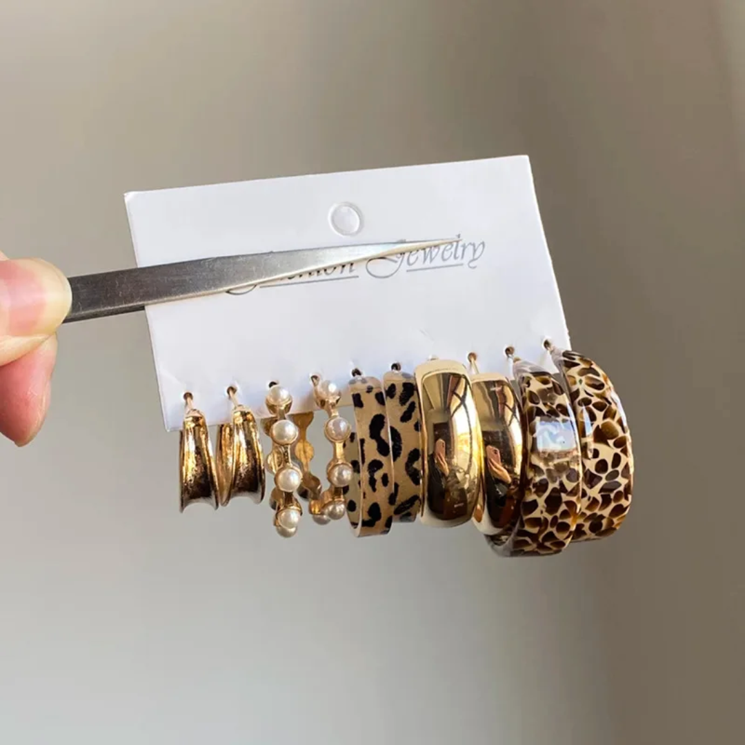 Rowan Vale Ten Set Leopard Hoop Earrings