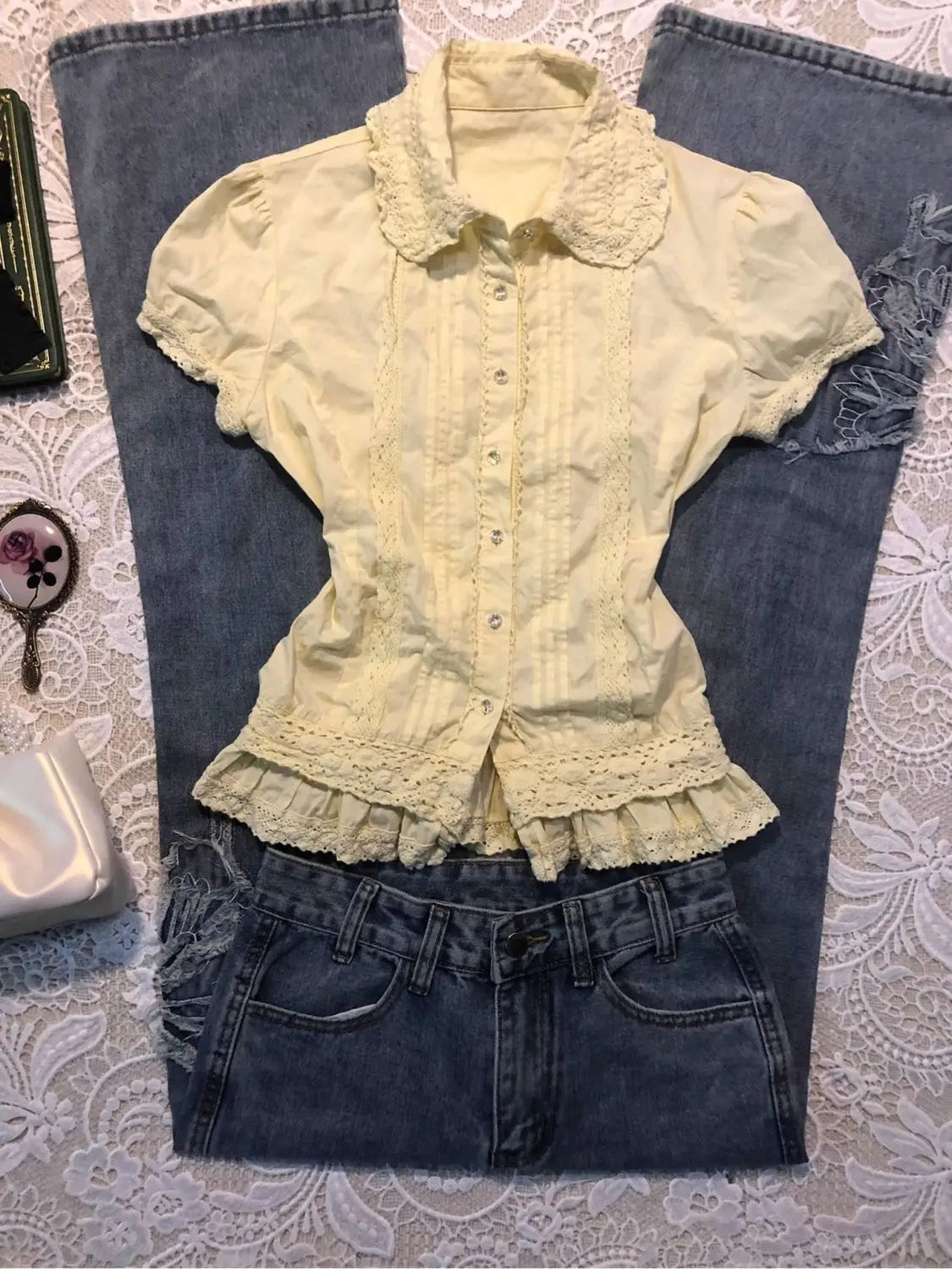 Wisteria Moon Bow Satin Shirt