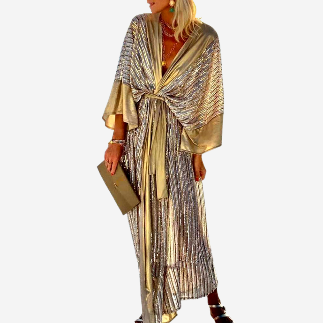 The Juliette Labelle Outshine Dress is the perfect choice for a special occasion. This beautiful long dress features oversized sleeves and a luxurious silky belt to cinch the waist. The classic silhouette is flattering and timeless, while the oversized sleeves give a modern touch.
