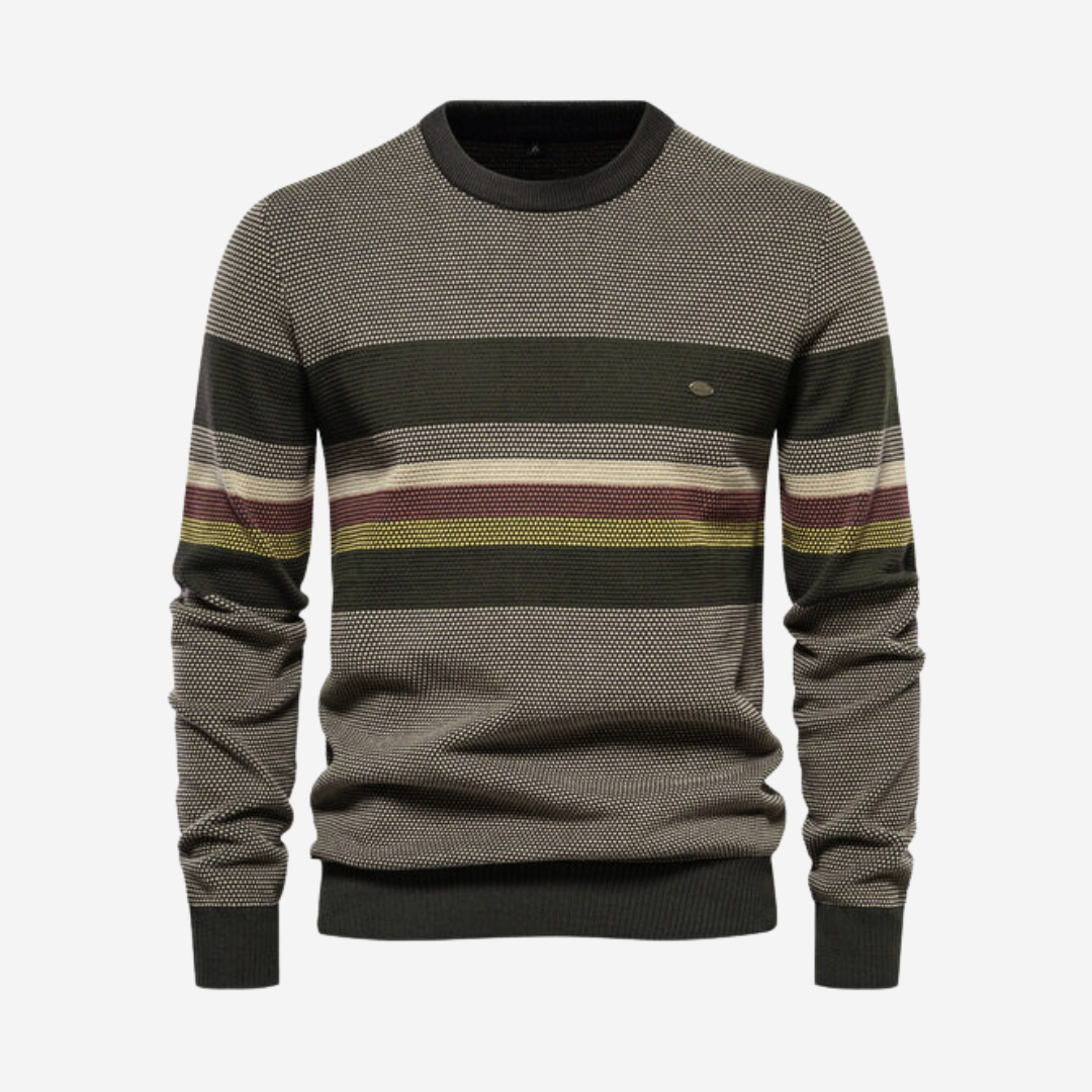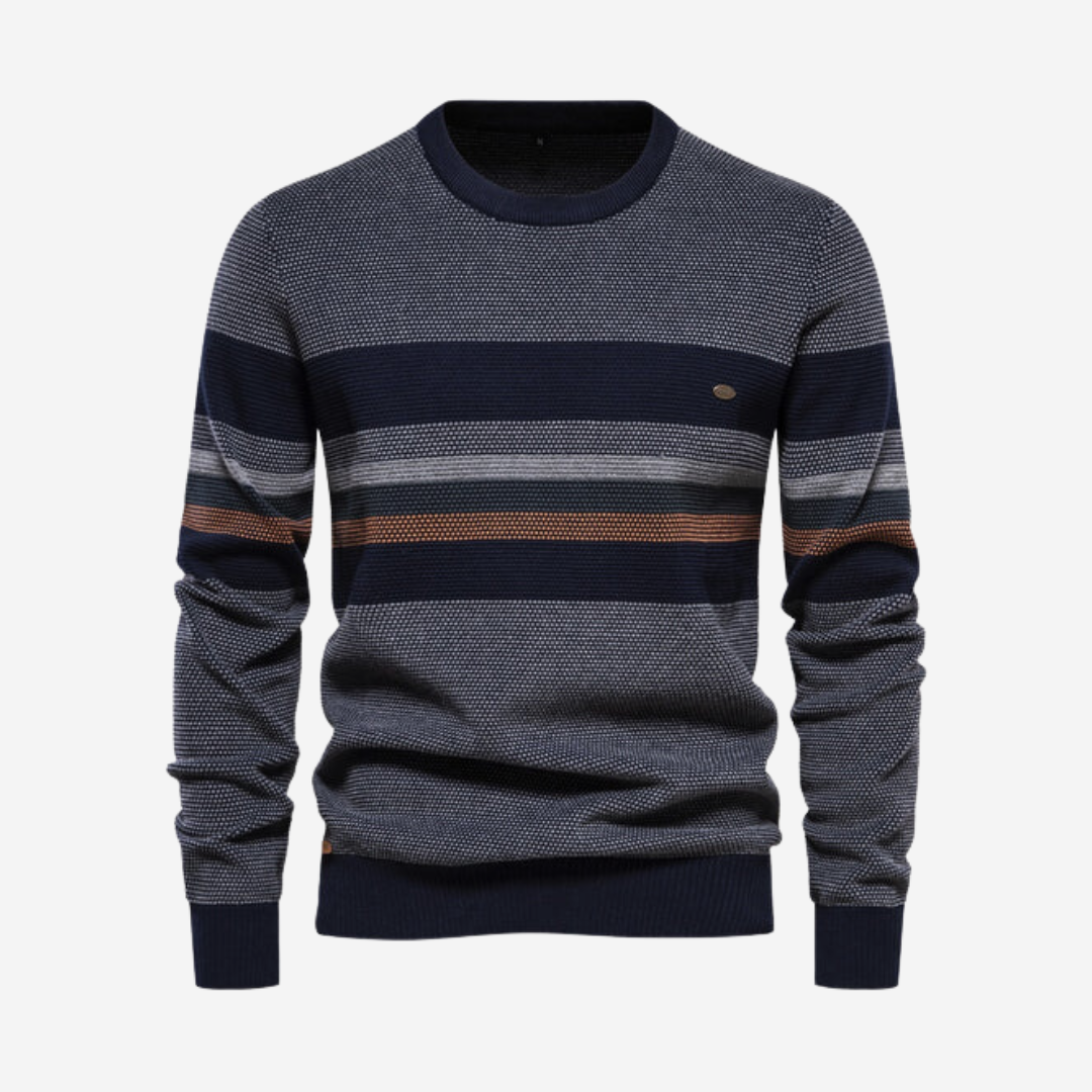 Elevate your wardrobe with the Royal Adams Striped Sweater, a harmonious blend of classic style and modern comfort. Its alluring 'O' neck design seamlessly melds with the sophisticated striped pattern, crafting an aesthetic that's both timeless and contemporary.