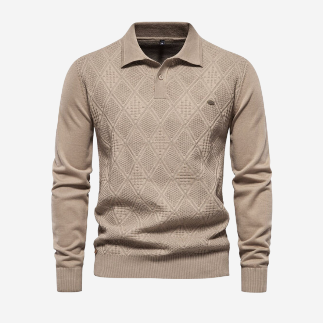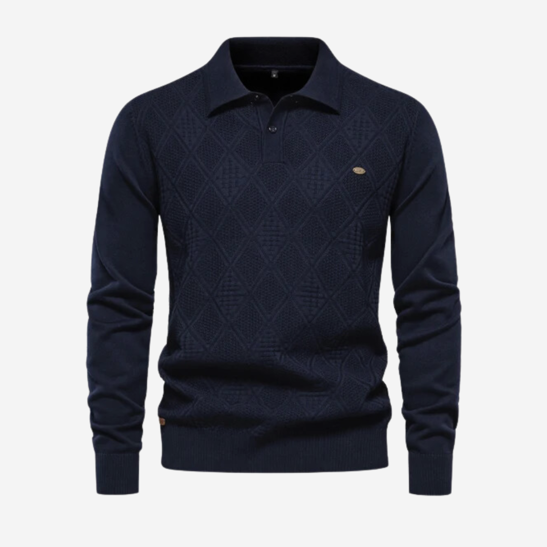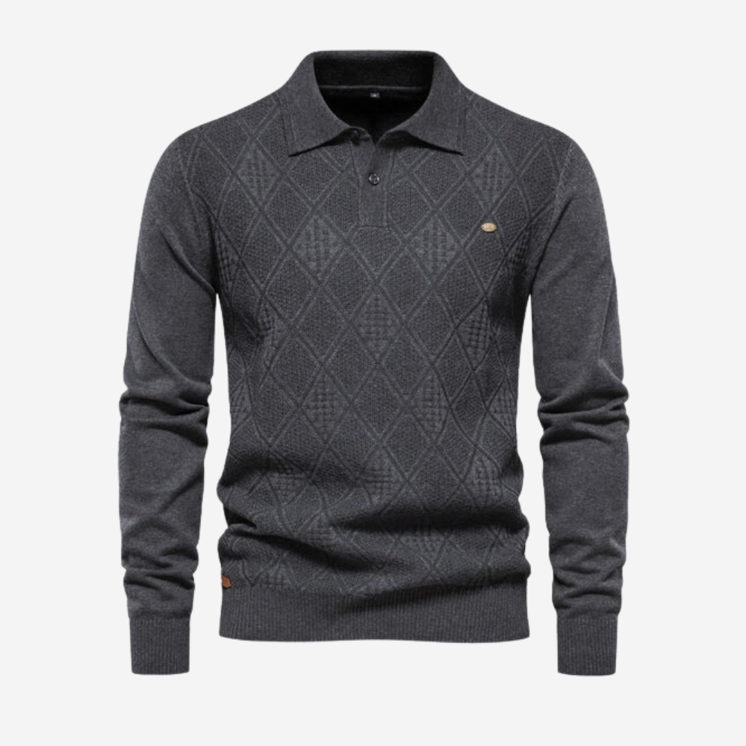 Elegance meets everyday comfort in the Royal Adams Long Sleeve Sweater. This meticulously crafted polo boasts a chic diamond pattern, setting it apart from the ordinary.