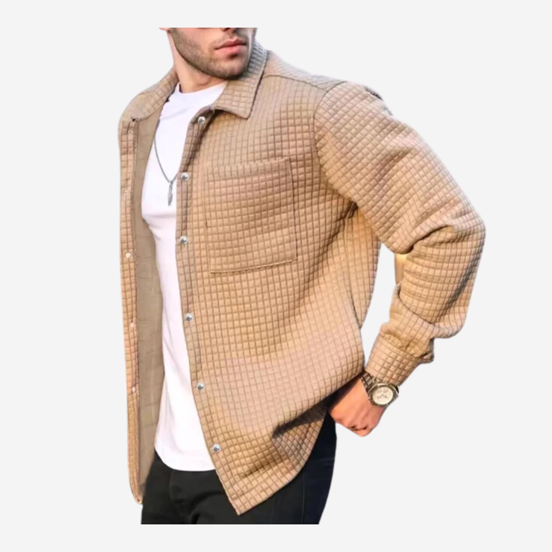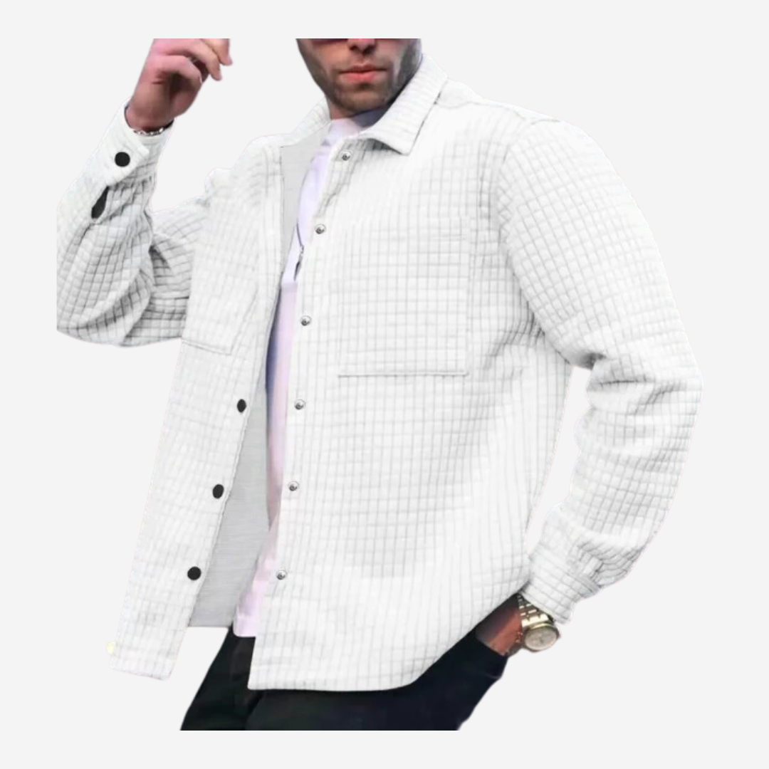 The shirt's plaid design balances classic and contemporary styles, offering refined yet versatile appeal for both professional and casual settings.