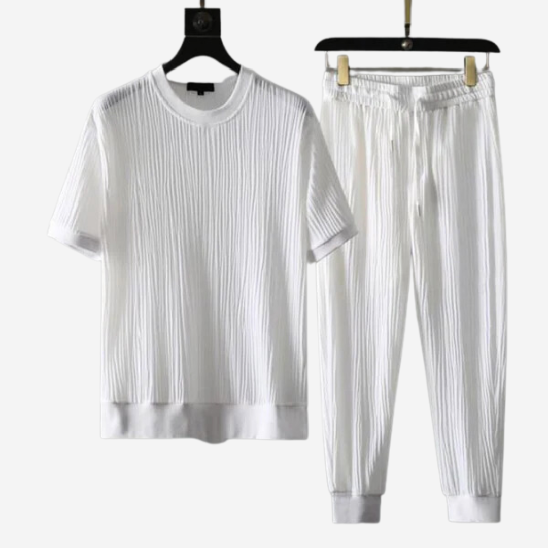 Indulge in the lavishness of the Tom Carter Suave Silk Set, an embodiment of elegance and comfort. Its sleek, sophisticated design captures a modern, refined aesthetic that effortlessly transitions from a day of relaxation to an evening of entertaining.