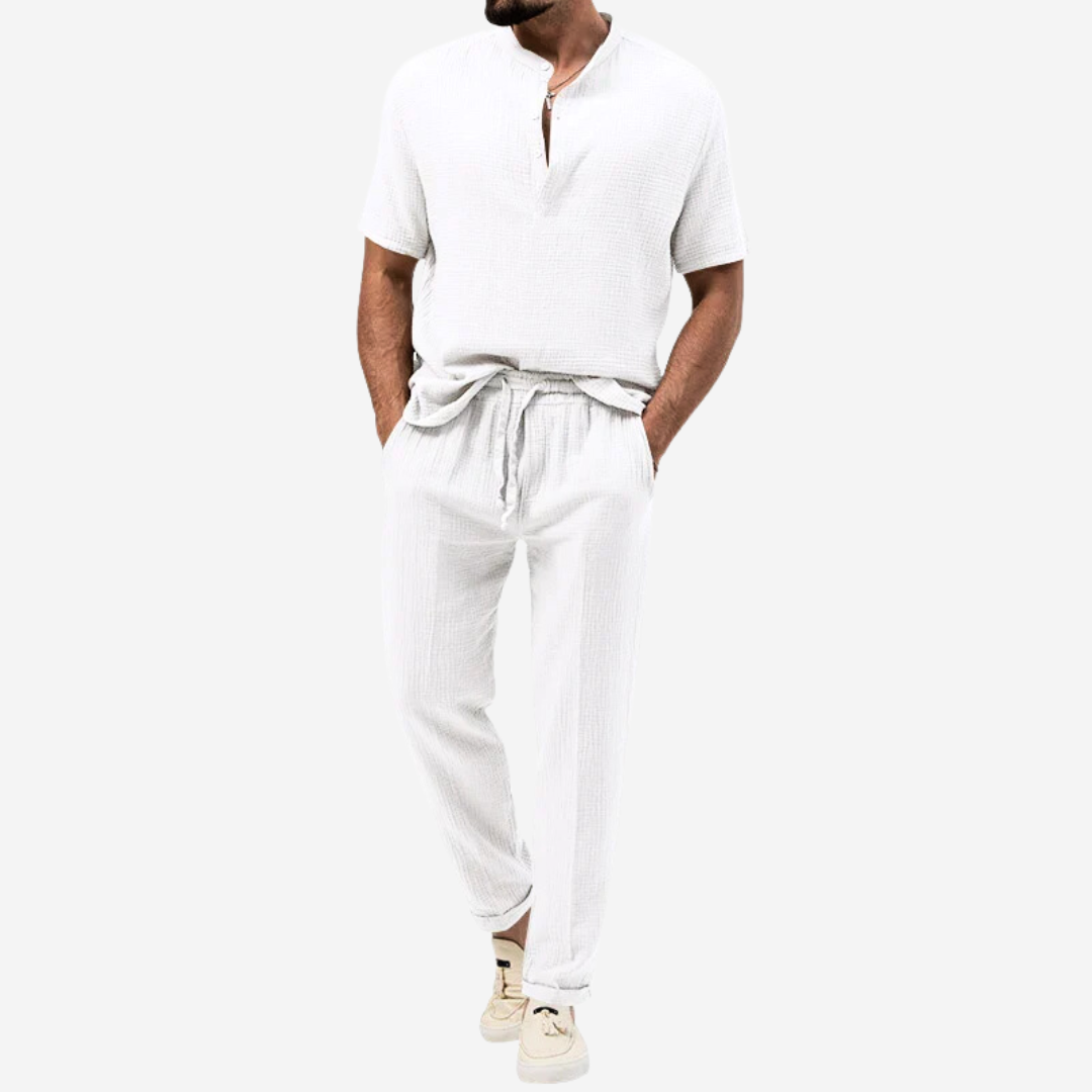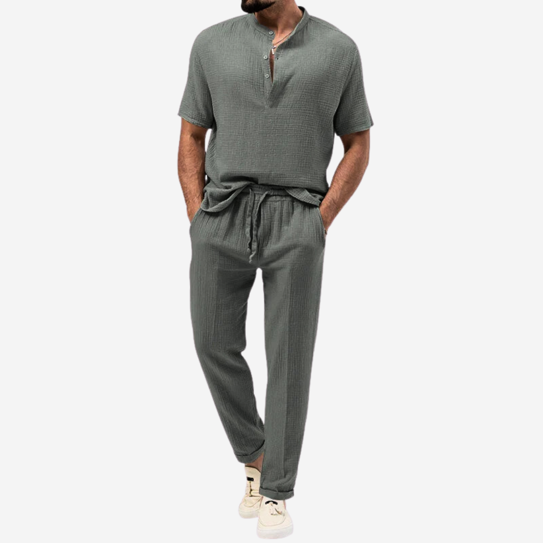 Whether you're unwinding at home, strolling along the coast, or venturing out for a weekend getaway, the Beaumont Fletcher jumpsuit offers unparalleled comfort without sacrificing style. Choose from a curated palette of deep navy, rich espresso, classic grey, or crisp ivory to complement your individual aesthetic.