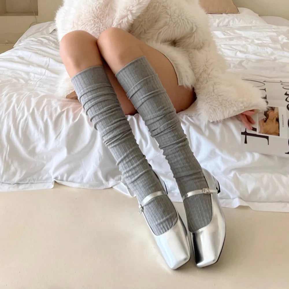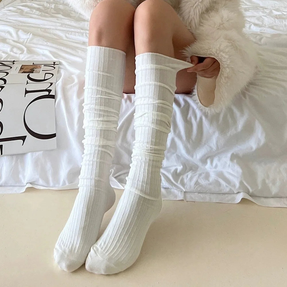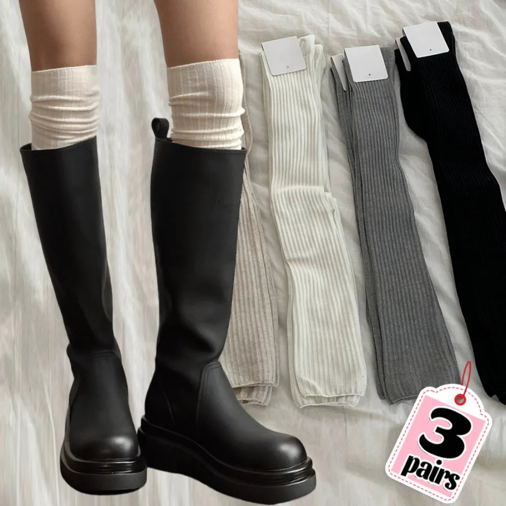 Ribbed knee‑high socks made from a breathable cotton blend that stay up without digging in. Cushioned, stretchy, and perfect under tall boots for cozy daily wear.