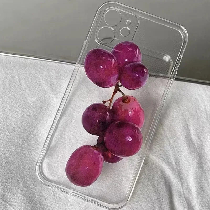 A clear, protective cover with a playful bunch of purple grapes. Slim and lightweight, it keeps your phone safe while adding a pop of color.
