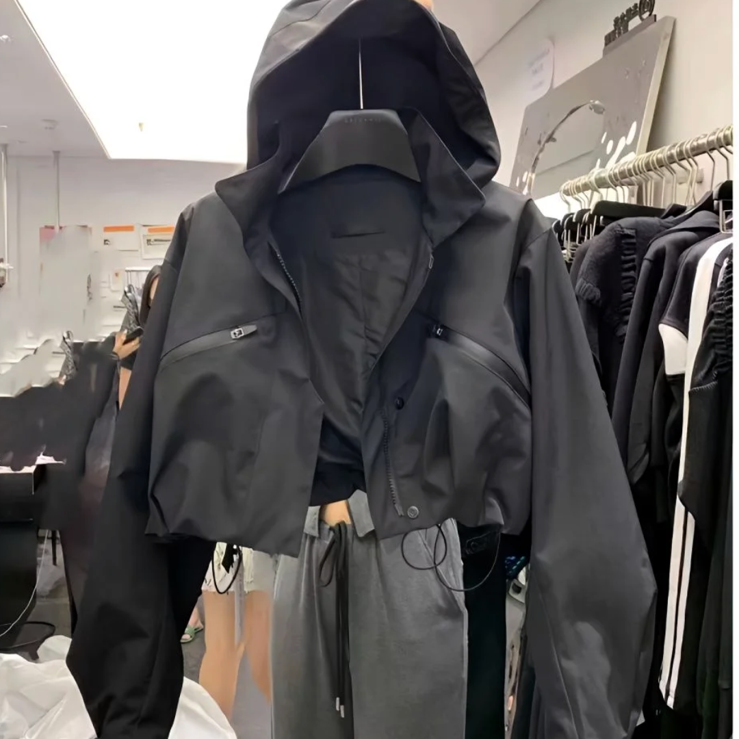 This jacket fuses a structured stand‑neck hood with a wind‑resistant cropped silhouette, giving streetwear bite to classic safari utility. The matte shell, dropped sleeves, and cinch‑able hem layer effortlessly from commutes to late‑night shows.