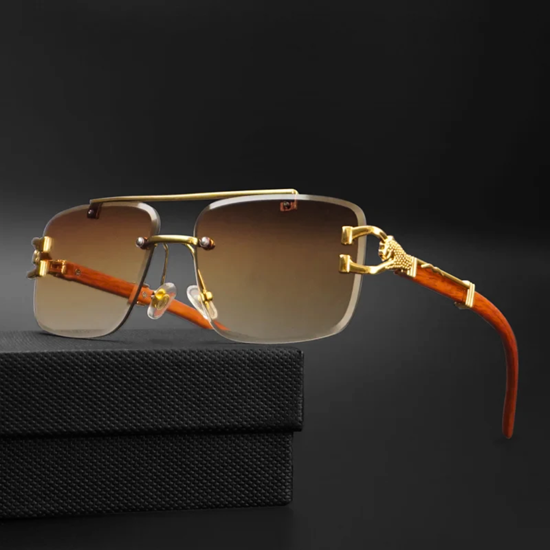 Crafted from lightweight, high-tensile alloy, these shades boast a bold square frame and a distinctive flat-top silhouette for an air of rebellion. The real showstopper? Hand-enameled lion head accents on the temples, a symbol of strength and power that sets you apart from the crowd.