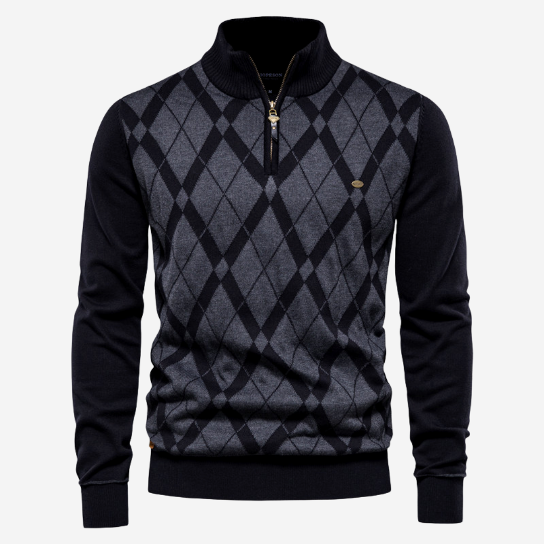 This Tom Adams Kingsman Cardigan is the perfect addition to your wardrobe. Crafted from a soft cotton blend, it features a quarter zip mock neck, long sleeves, and a diamond shaped pattern for a stylish look. The lightweight fabric is perfect for layering, making it a versatile piece that can be worn all year round.