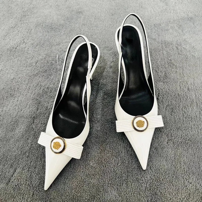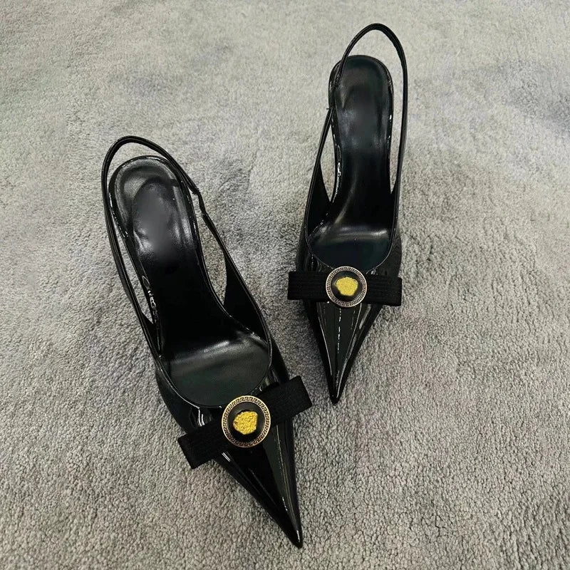 The refined bow accent showcases a subtle metallic touch, lending a hint of French-inspired charm. Designed to transition effortlessly between seasons, these heels offer a sleek silhouette and a comfortable fit for every occasion.