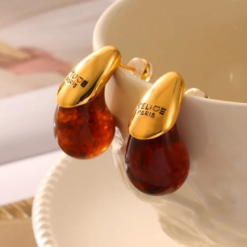 The rich, warm amber color shimmers beautifully against the gleaming gold setting, creating a captivating accessory that will turn heads. Whether you're dressing up for a special occasion or adding a touch of sophistication to your everyday look, these earrings are sure to make you shine.