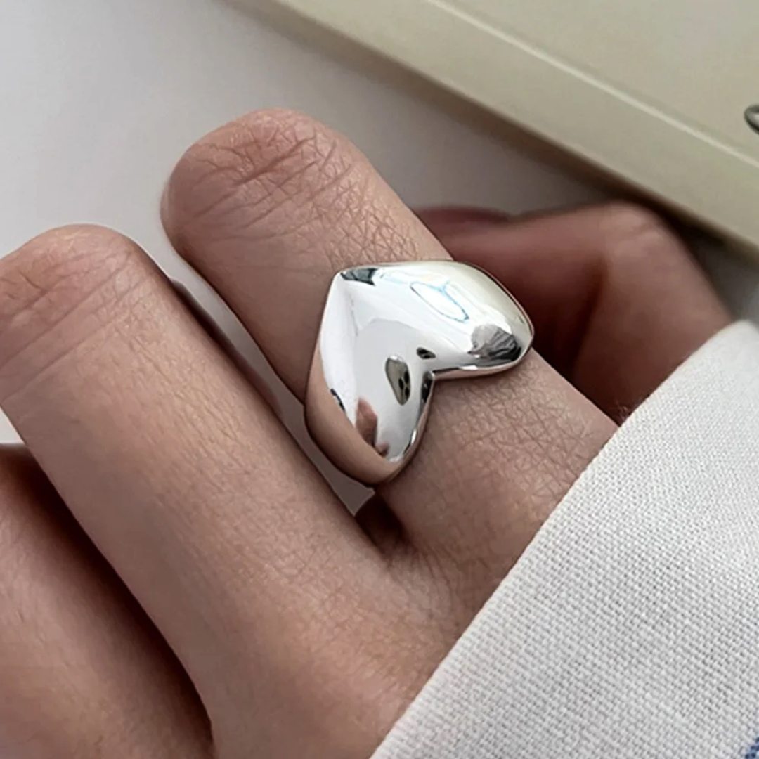 This exquisite piece features a uniquely handcrafted heart silhouette, forged from premium 925 sterling silver. The ring's irregular geometric design captures the essence of modern artistry, making it a versatile statement piece for the discerning wearer.