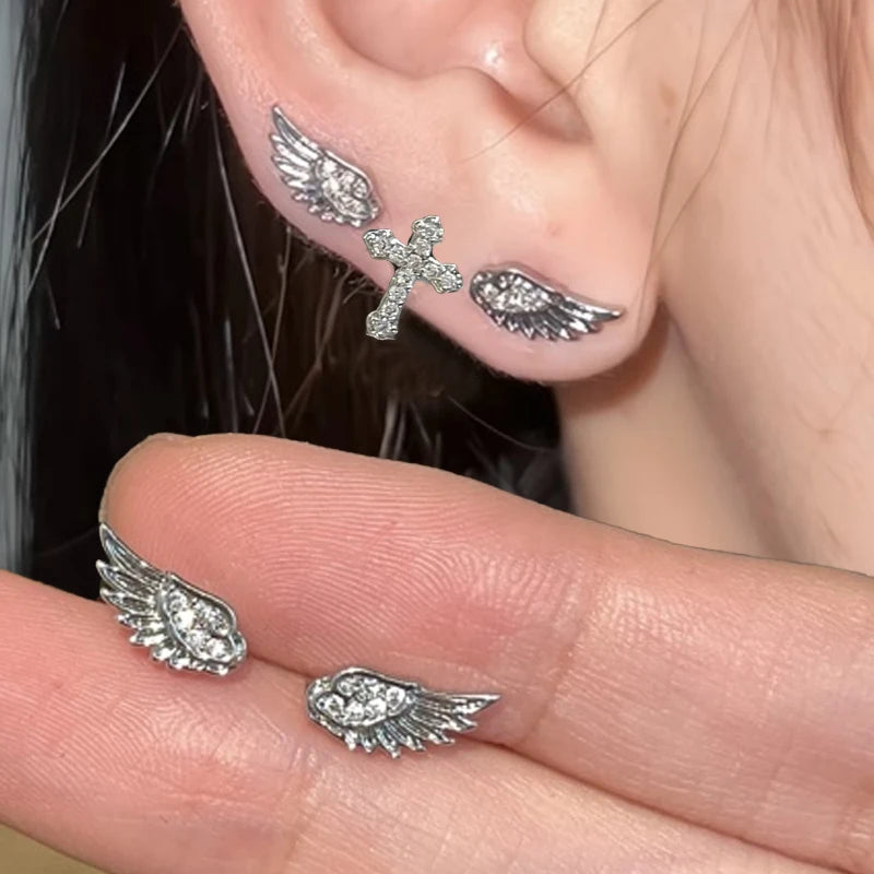 Angel Wing Cross Stud Earrings