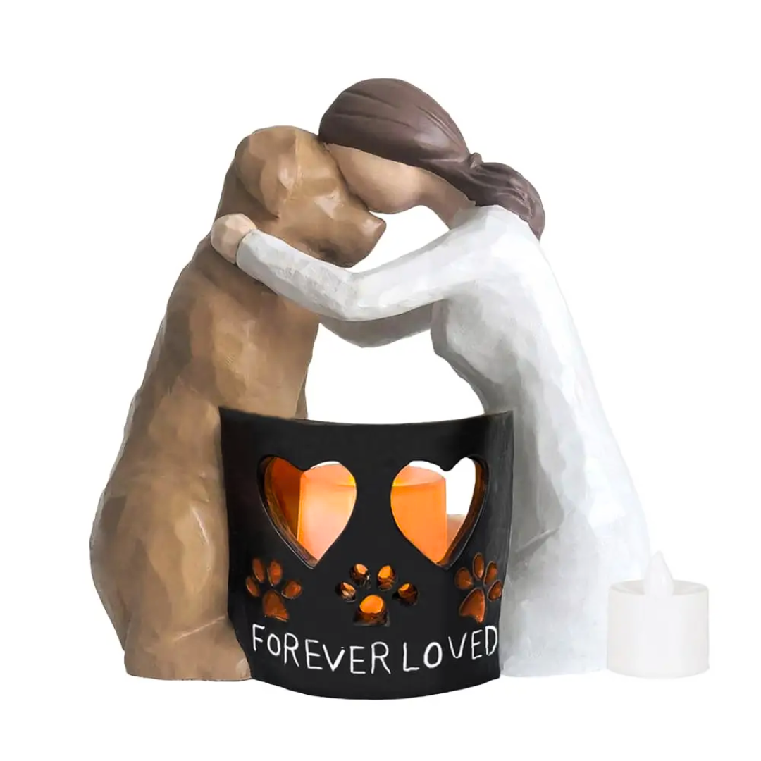They may be gone from your sight, but never from your heart. The Angel's Embrace Candle Holder is a tender tribute to the unwavering love you shared with your cherished pet. This poignant sculpture captures the bittersweet moment of an angel welcoming your furry companion into eternal peace, offering a comforting reminder that they are forever loved and never truly gone.