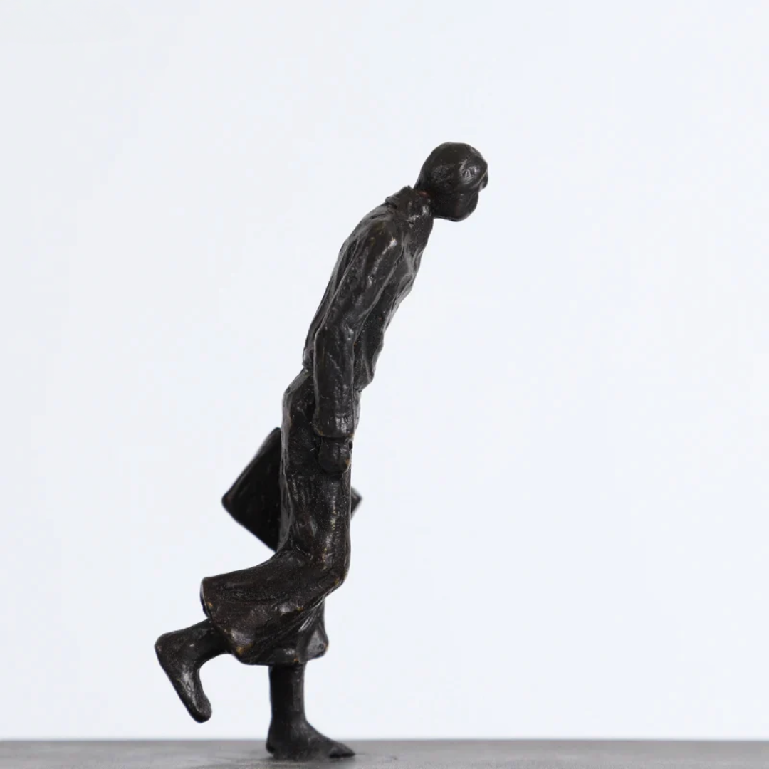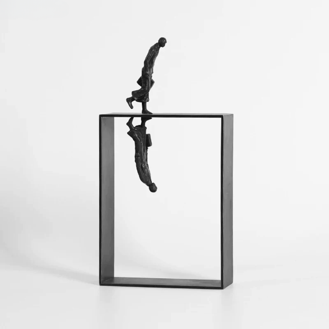 Aperçu isn't a sculpture; it's a kinetic meditation. This monumental piece, hand-forged from heavy-gauge, industrial steel, captures a figure in quiet contemplation, its form seemingly emerging from a stark, geometric frame. The hand-polished, raw steel develops a unique patina over time, a testament to the sculptor's vision and the passage of time.