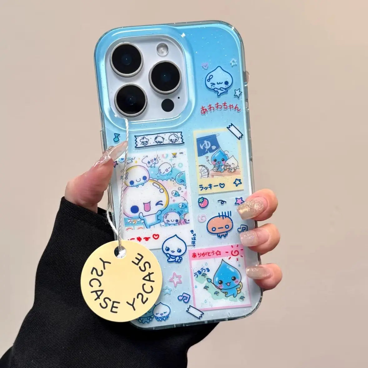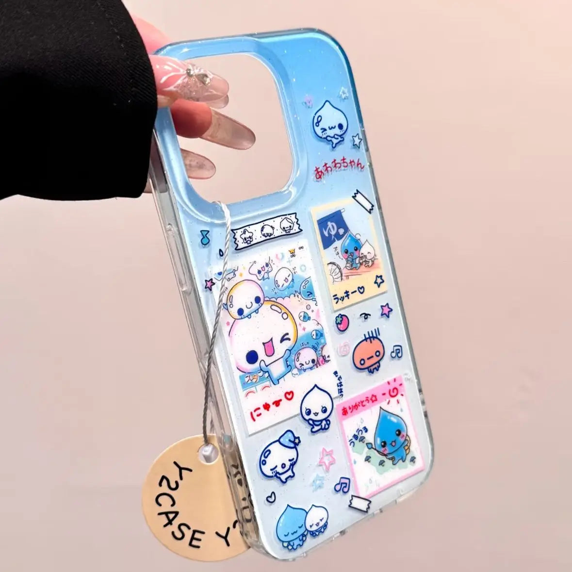 Aqua Comic wraps your iPhone in a sky‑blue collage of cute manga panels, topped with raised “water” drops that glint and shift as you move. The slim, shock‑cushioned TPU shell guards every edge while keeping the playful Y2K artwork crystal clear.