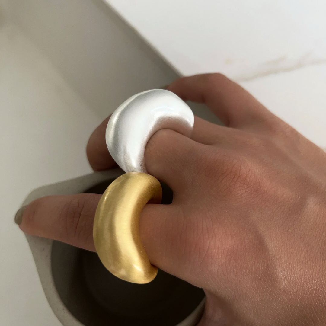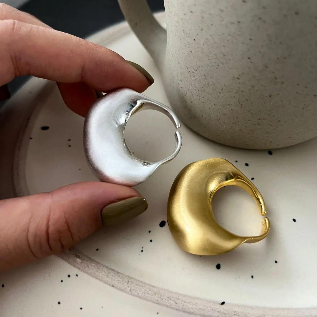 The Exaggerated Metal Matte Irregular Arc Shaped Open Adjustable Ring is a statement piece that defies expectations. Wear it as a bold fashion accessory, OR let your creativity shine and repurpose it as a unique handle for your favorite containers! It's the ultimate blend of fashion and function.