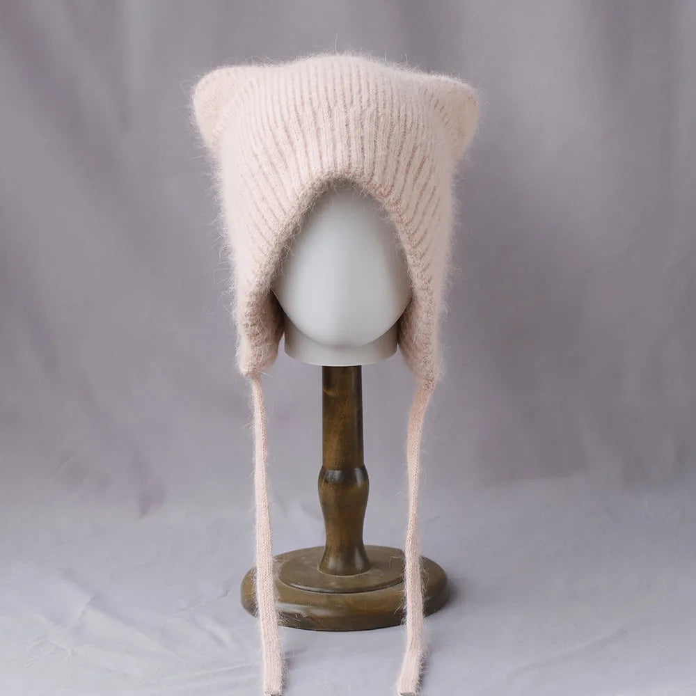 Meet the Lune Earflap Bonnet, an ultra‑plush, angora‑touch knit with a softly sculpted crown and elongated earflaps that tie to seal in warmth. Designed for ski days and city nights alike, it frames the face beautifully while delivering cloud‑soft insulation without the bulk.