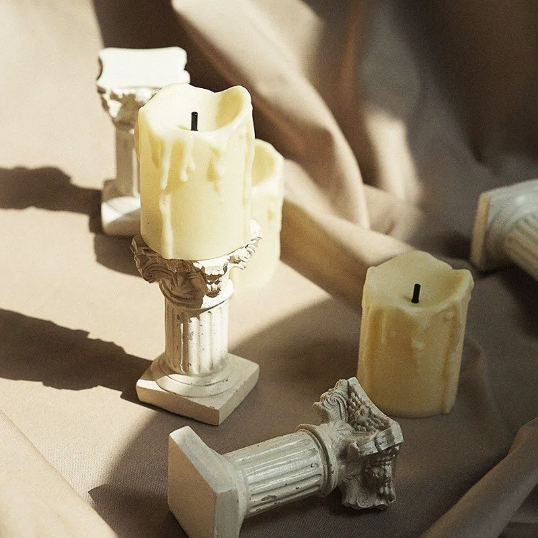 Transform your home into a gallery of ancient artistry with meticulously crafted candles inspired by classical architecture.