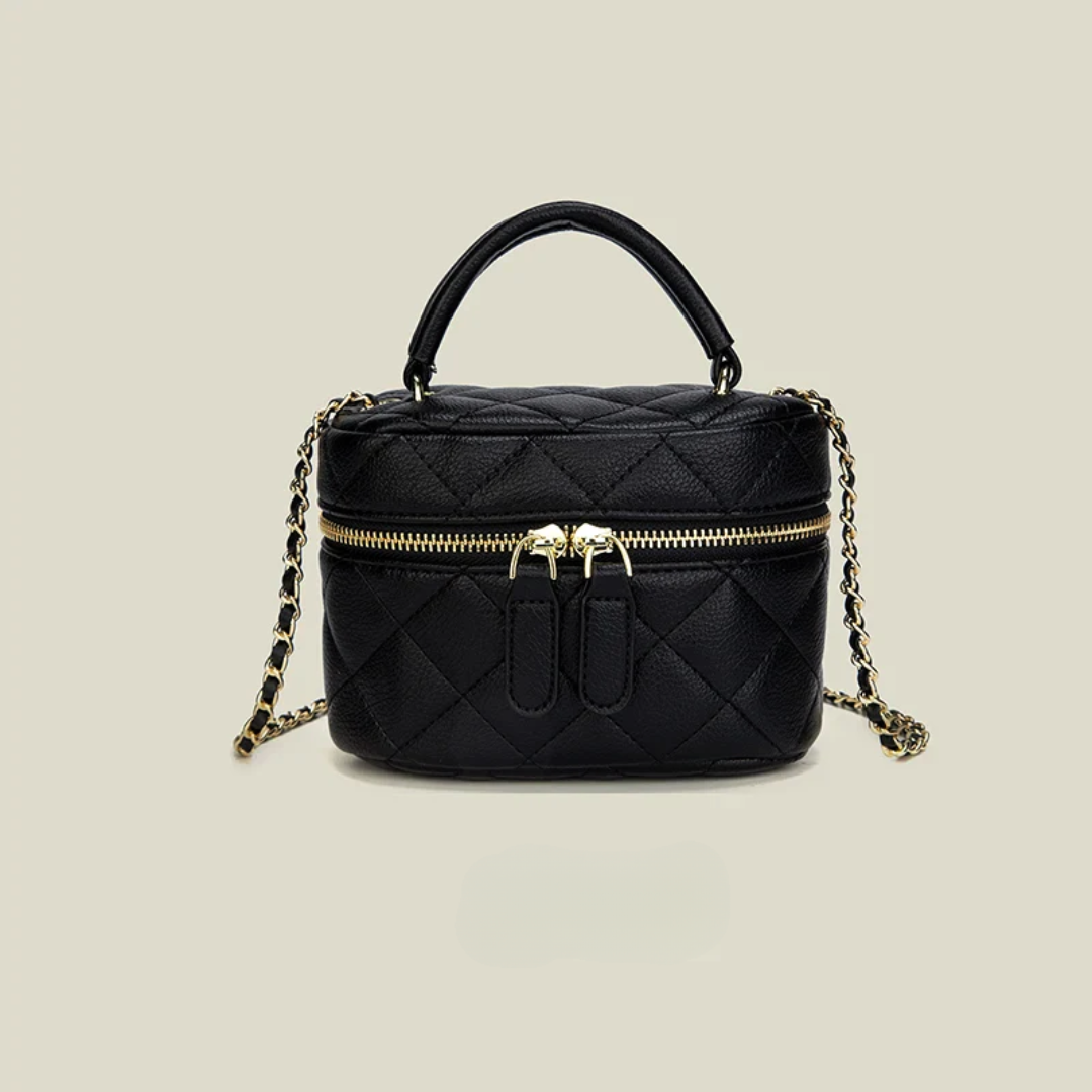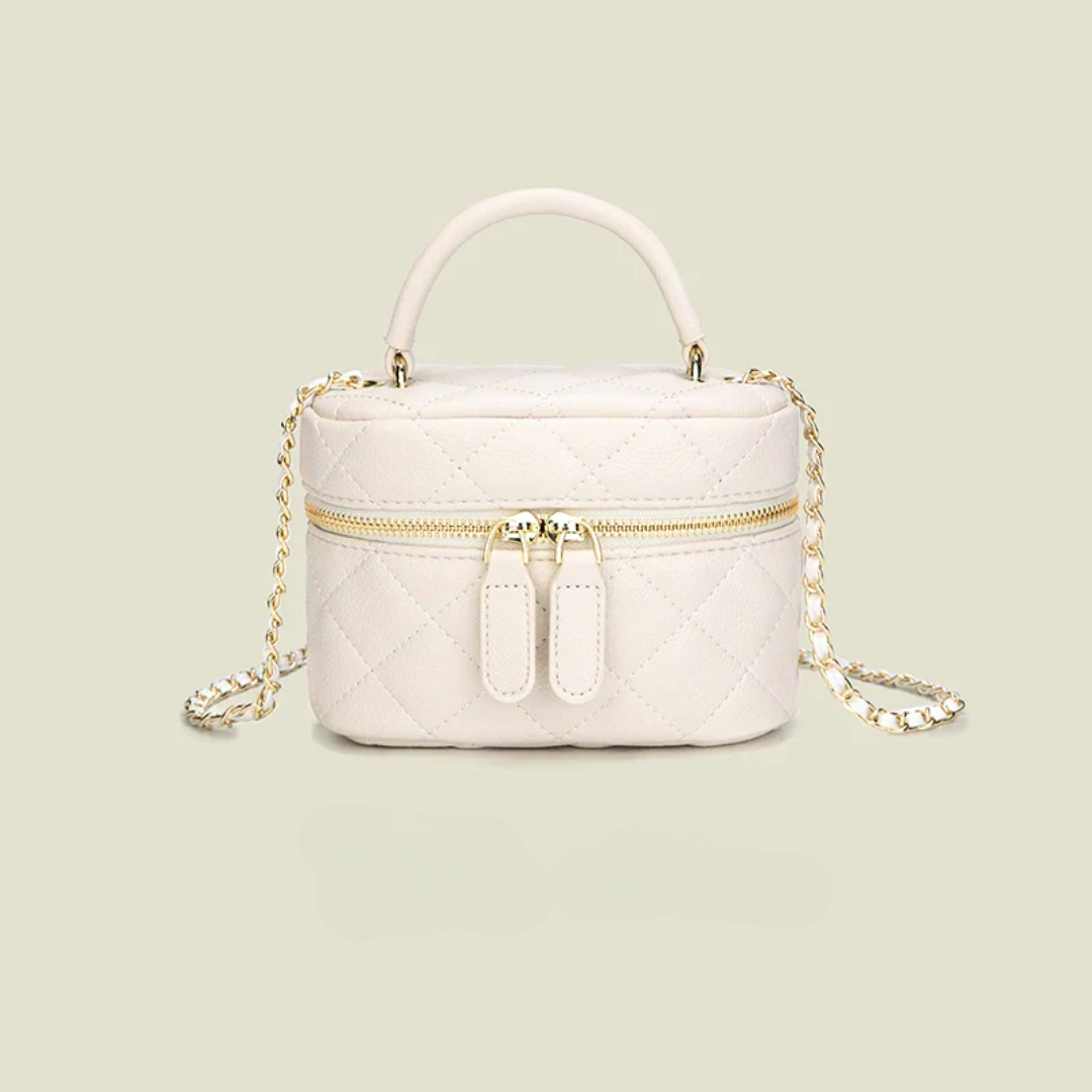 This exquisite handbag captures the essence of modern elegance with its plush quilted exterior and sleek silhouette. Available in a sophisticated palette including classic noir, soft lavender, and pristine ivory, the Aria adapts effortlessly to any occasion.