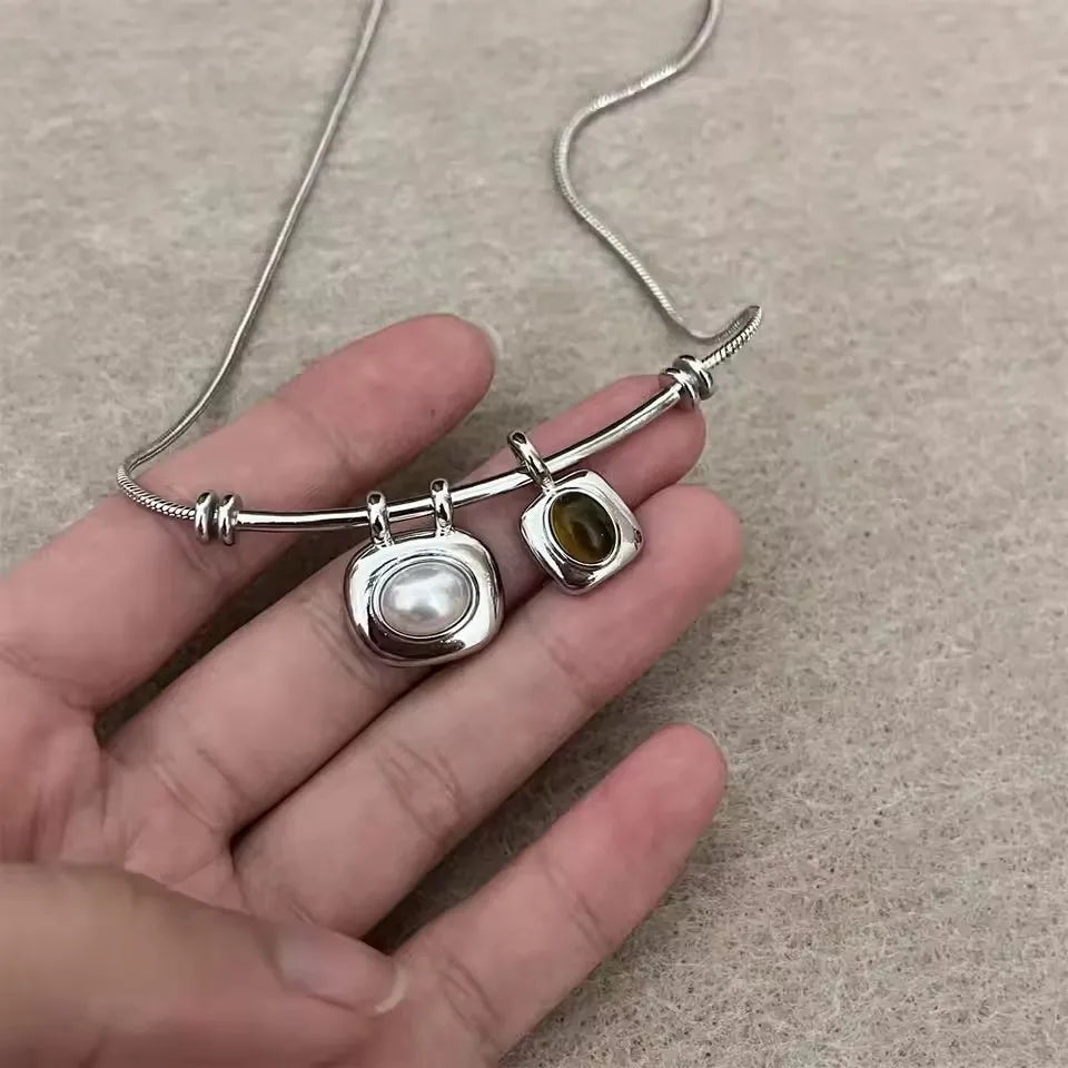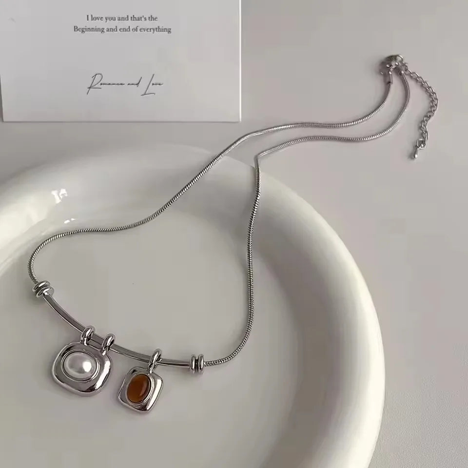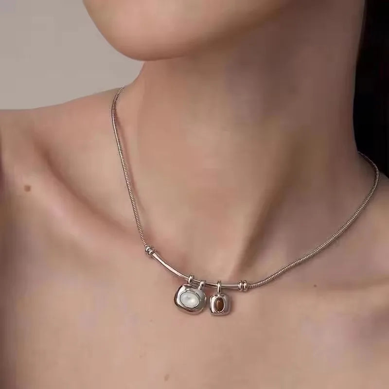 A glowing stone and luminous charm balance on a clean bar, floating at the collar for a subtle spotlight effect. The smooth chain drapes softly and adjusts for a just‑right close fit.