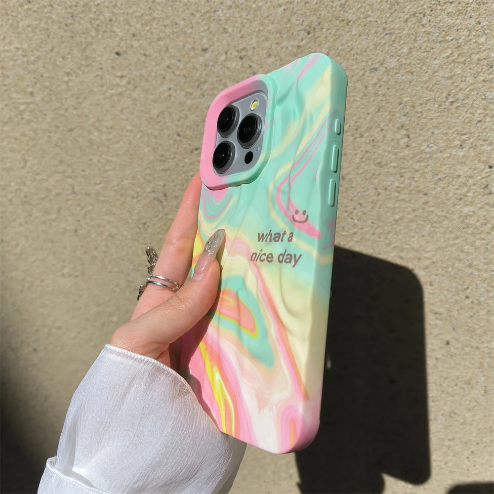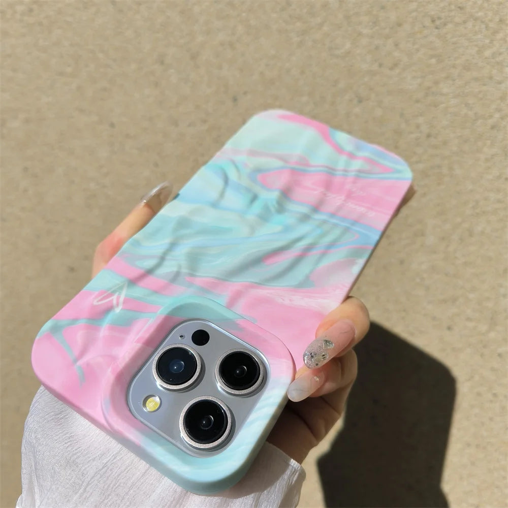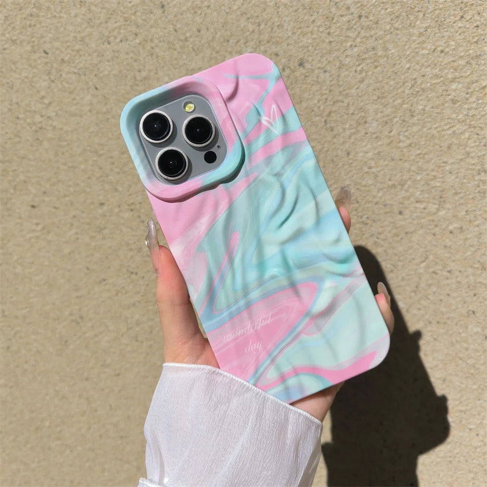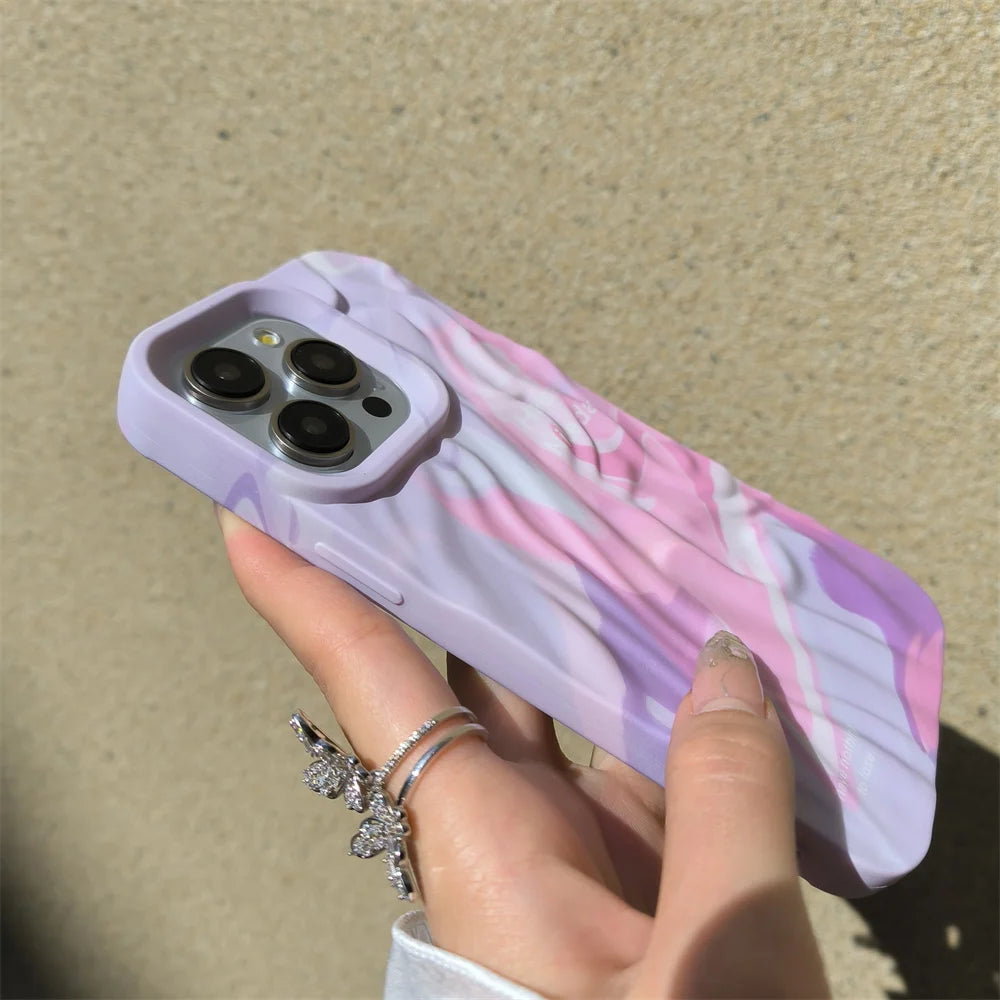 Pastel water-ripple patterns sweep across premium silicone, giving your phone a dreamy, high-end look. The sculpted edges offer screen and camera protection while keeping the profile slim and sleek. Each swirl shimmers in the light, turning your device into a stylish statement piece that feels as luxurious as it appears.