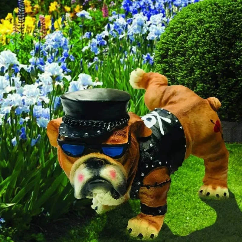 Meet the Bad to the Bone Bulldog, the hilarious statue that's ready to bring some attitude to your yard. Dressed in a leather jacket and shades, this tough pup is marking his territory with a mischievous grin. Guaranteed to get laughs and turn heads!