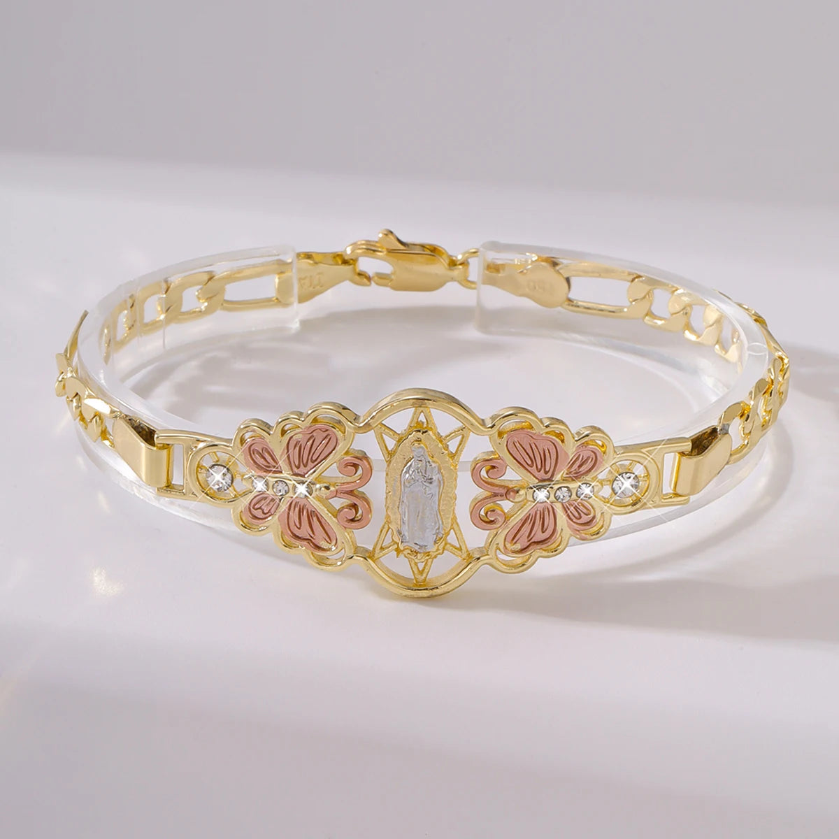 An elegantly detailed Virgin Mary charm lends a subtle yet radiant touch, making it ideal for both everyday wear and cherished occasions. Crafted for comfort and timeless allure, it’s the accessory that speaks both grace and glamour.