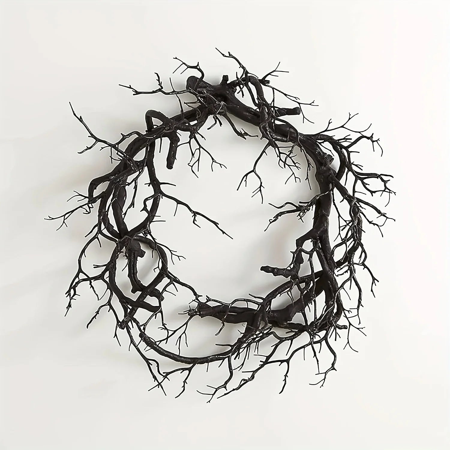 Blackbriar Home distills haunted elegance into a sculptural circle of “dead” branches. Matte black twigs, dusted with subtle shimmer, are pre‑lit for a soft, spectral glow—perfect on a door or mantel, or laid flat as a candle ring.