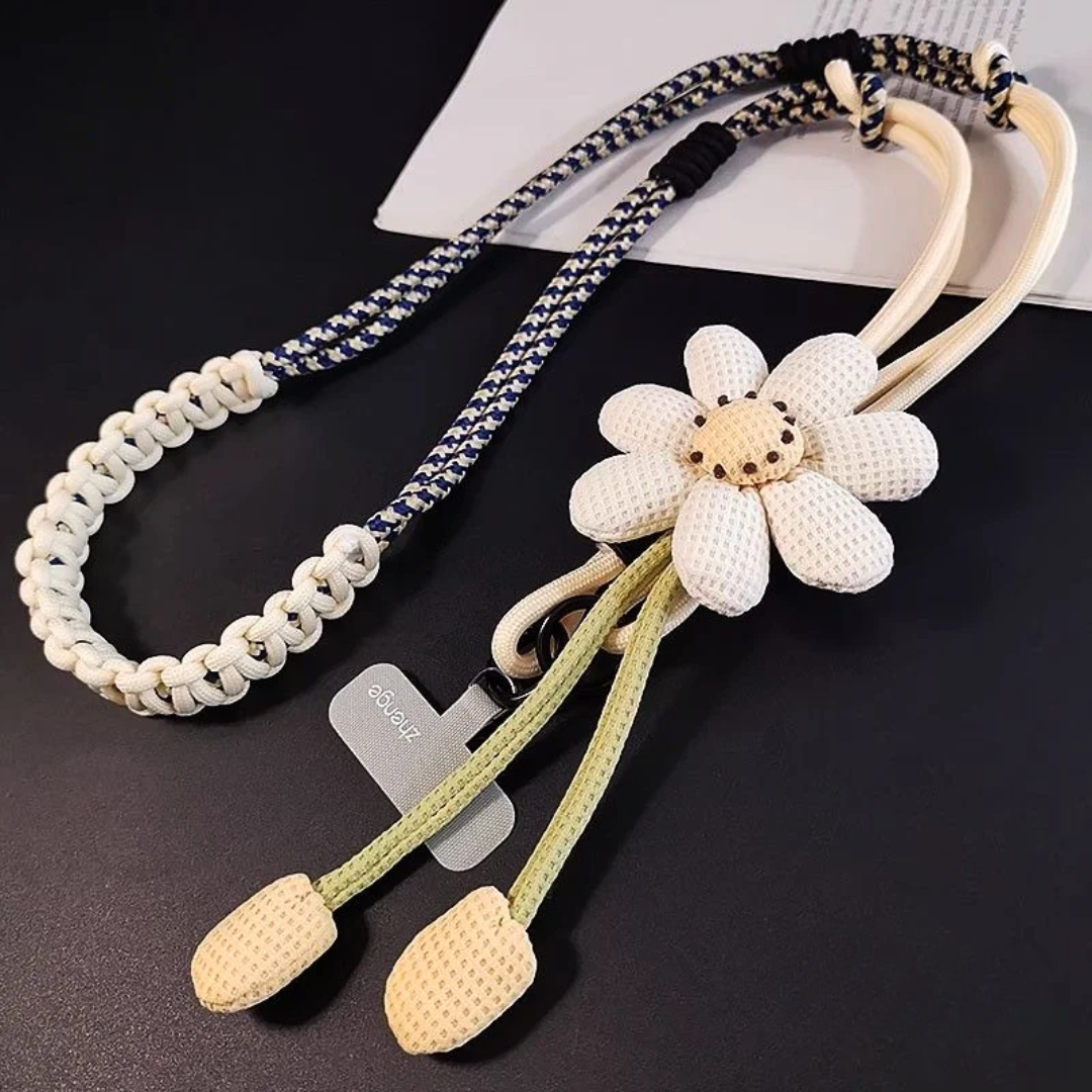 Plush braided cord and a soft daisy charm turn your phone into a crossbody you’ll actually wear. A 360° swivel clip and adjustable length keep movement tangle‑free while the universal mount clicks to most cases in seconds.
