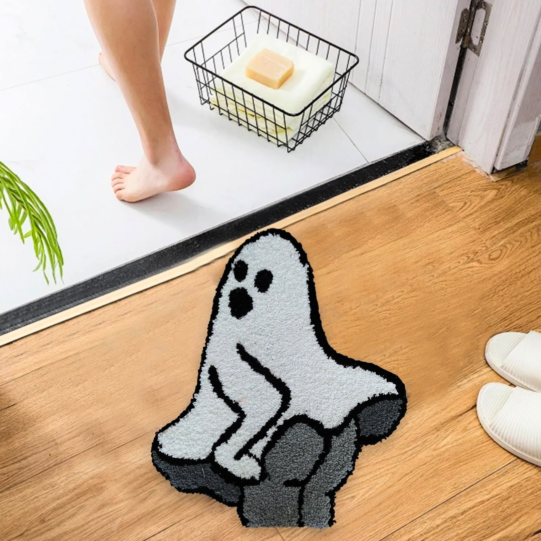 Beware! This adorable little ghost mat isn't here to haunt your house, it's here to make it bootyful! Step onto this naughty phantom and feel the soft fibers tickle your toes.