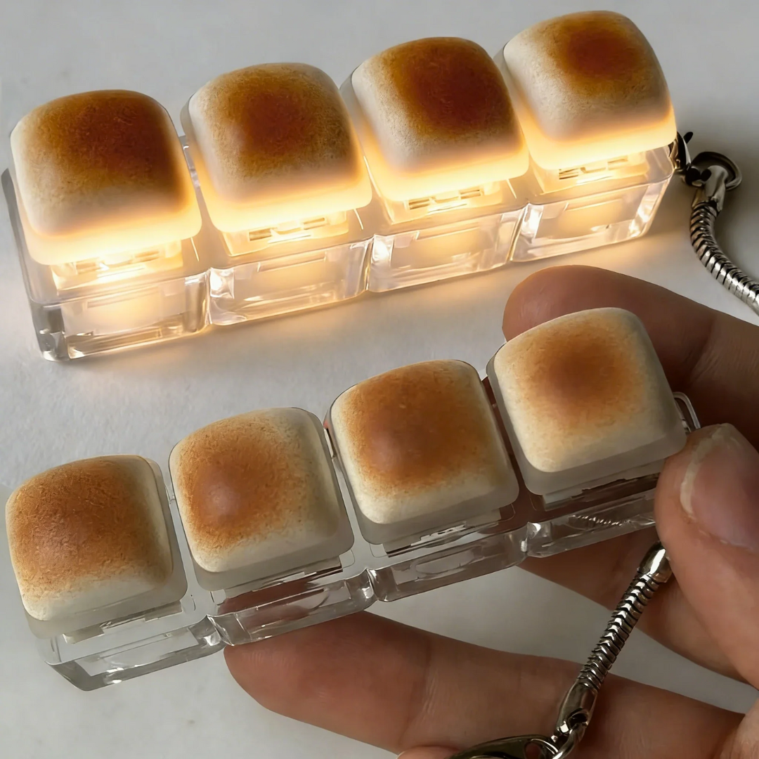 - Bread-shaped keycap design