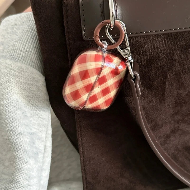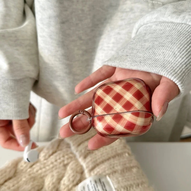 A warm brown plaid AirPods case that feels cozy and vintage-inspired. Simple, protective, and easy to clip onto bags or keys.