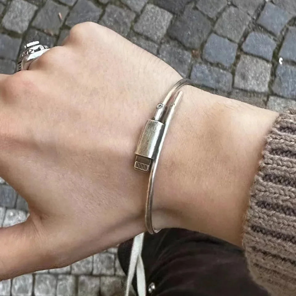 Embrace a hint of tech rebellion with this USB-inspired bracelet in a sleek, polished finish. Its adjustable design ensures a comfortable fit, while the minimal silhouette lends a cool, futuristic edge to any outfit.