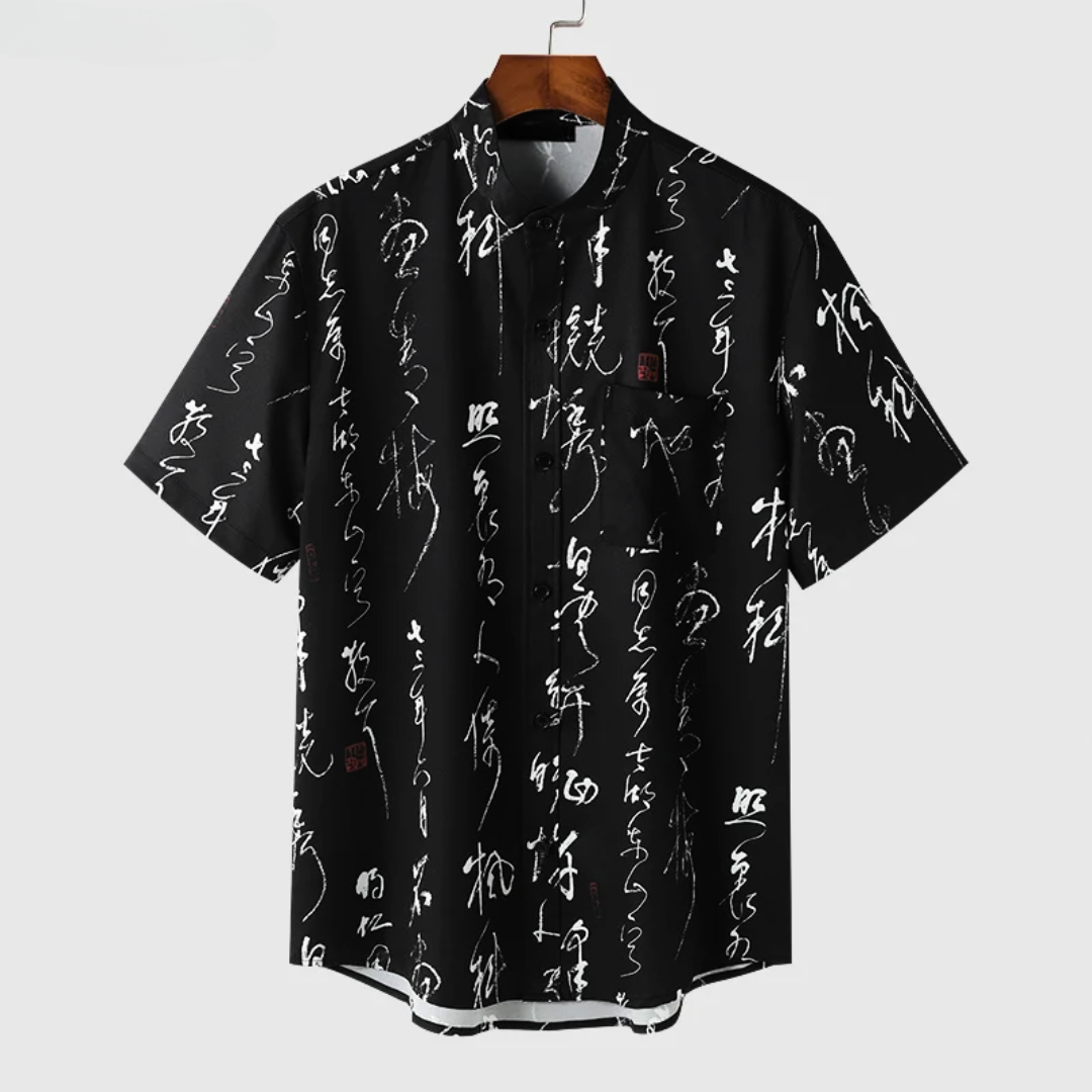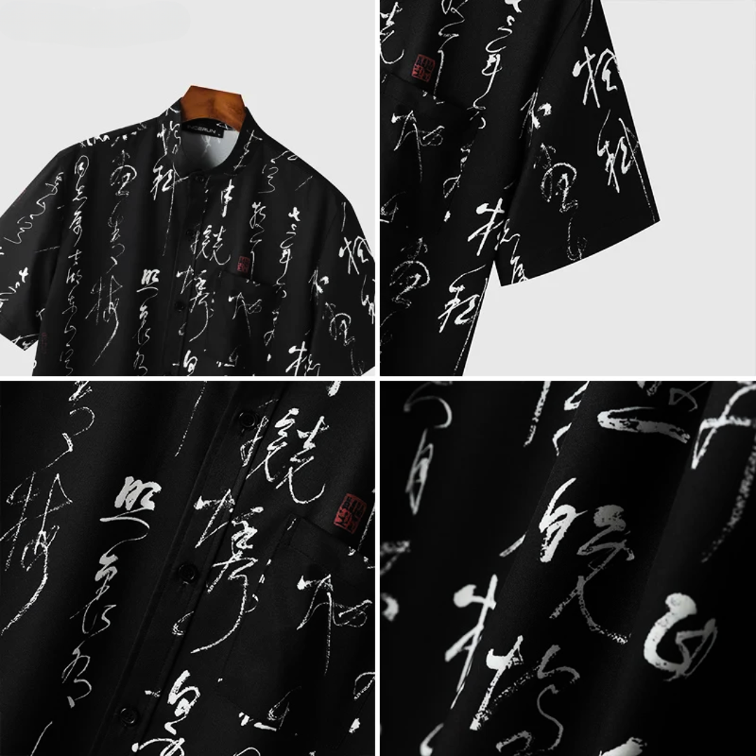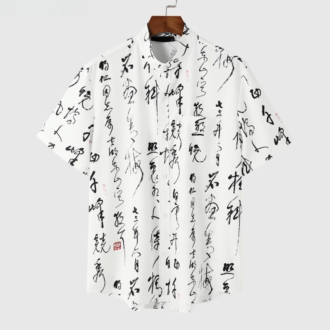 Crafted for the style-savvy individual, these shirts feature authentic Asian calligraphy patterns that make a bold cultural statement. Available in stark black and pristine white, these shirts blend traditional art with modern fashion, creating a look that's both eye-catching and sophisticated.