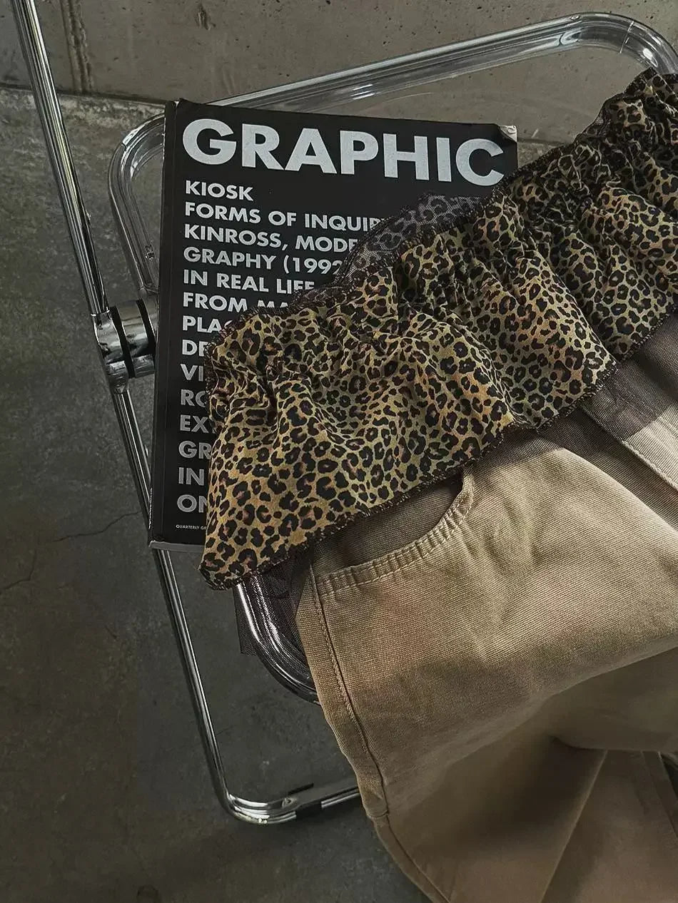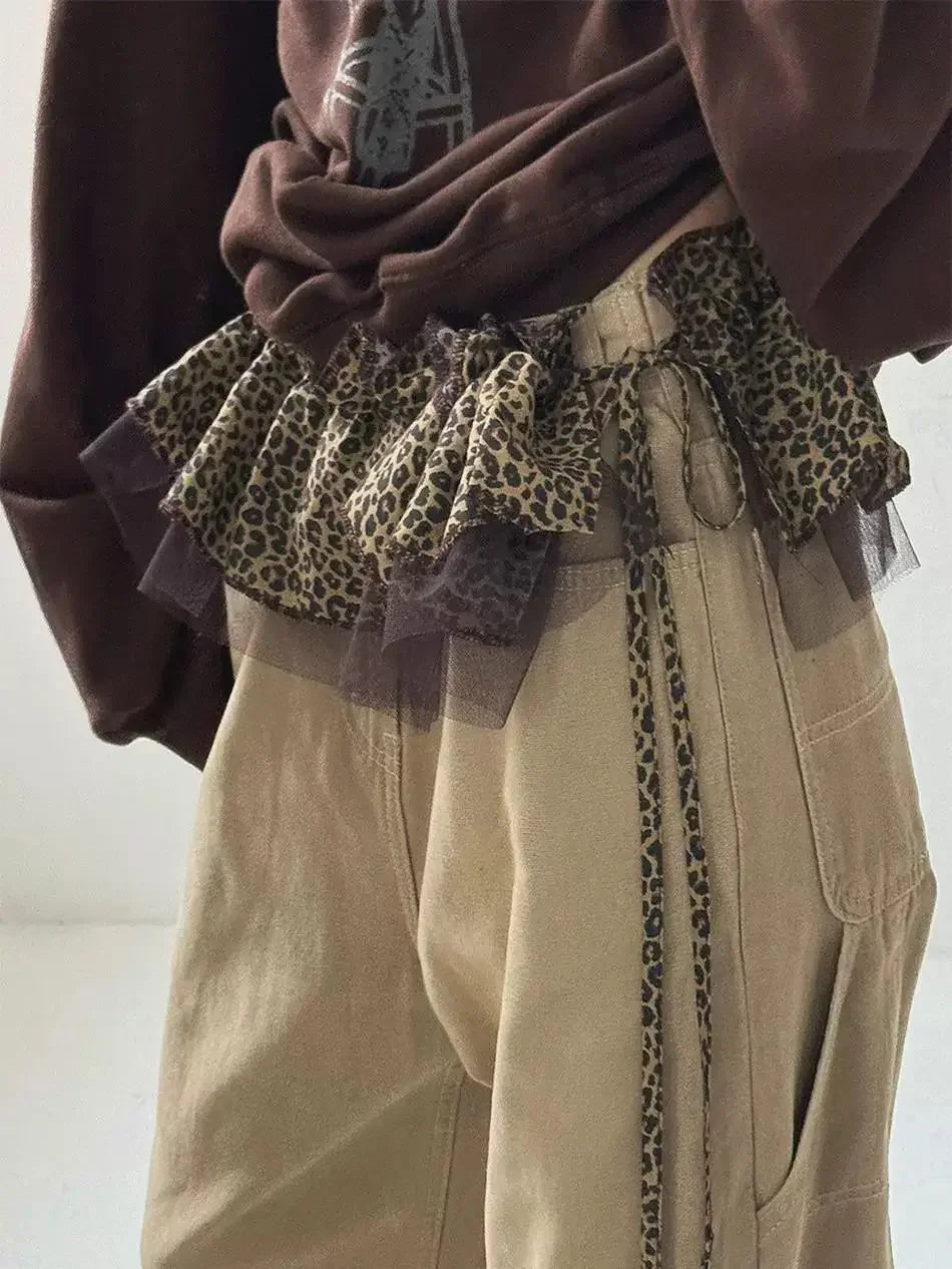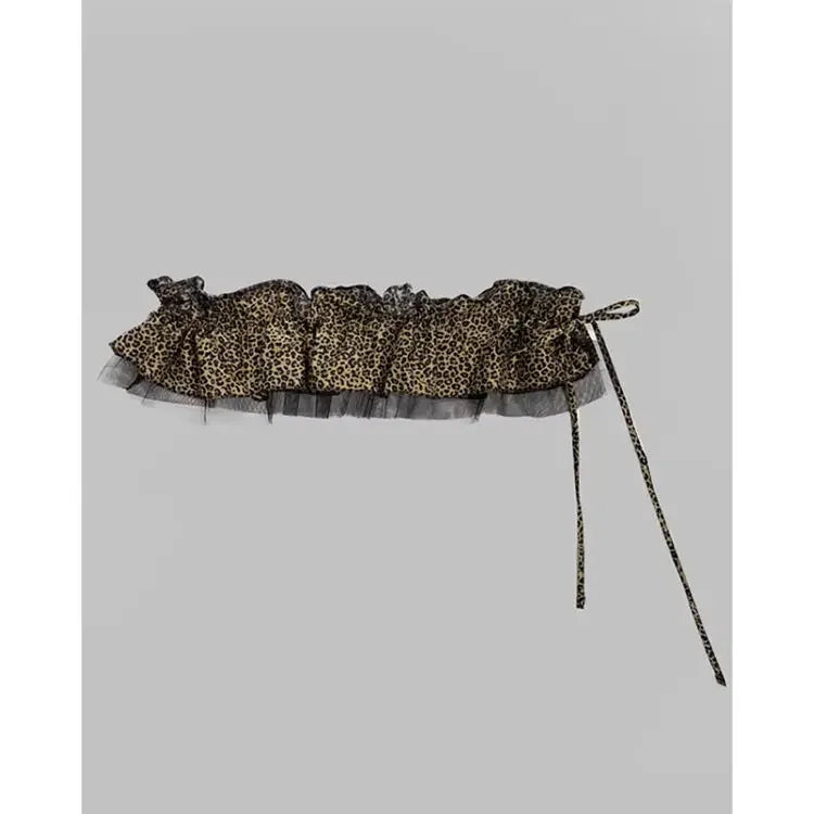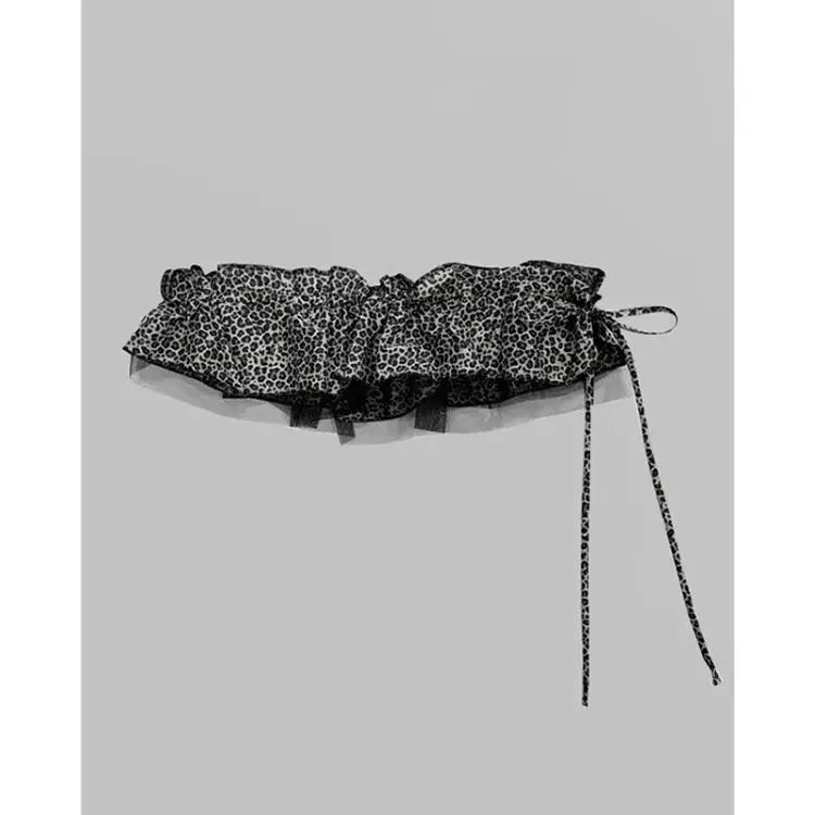 Make a statement with this mesh leopard piece, cinched by an adjustable lace-up. Ruffles and a dash of Y2K goth flair turn any look into a showstopper.