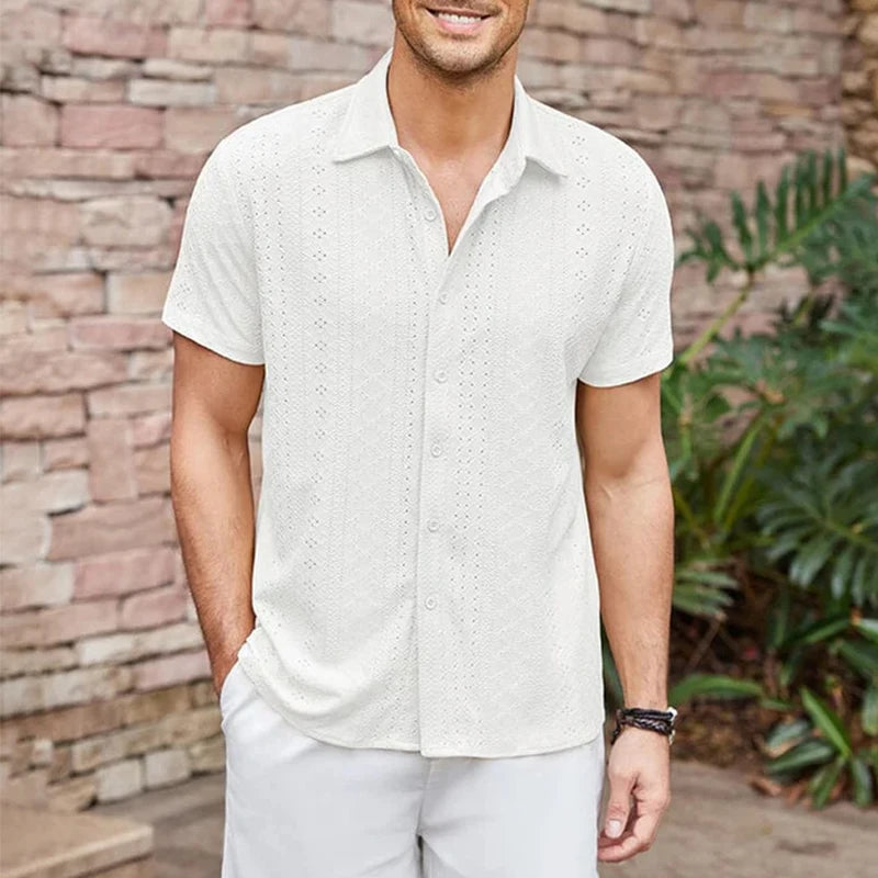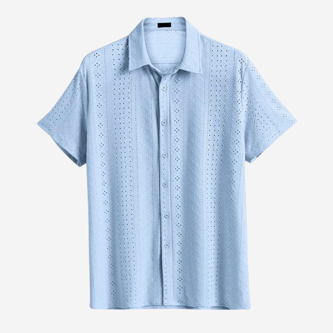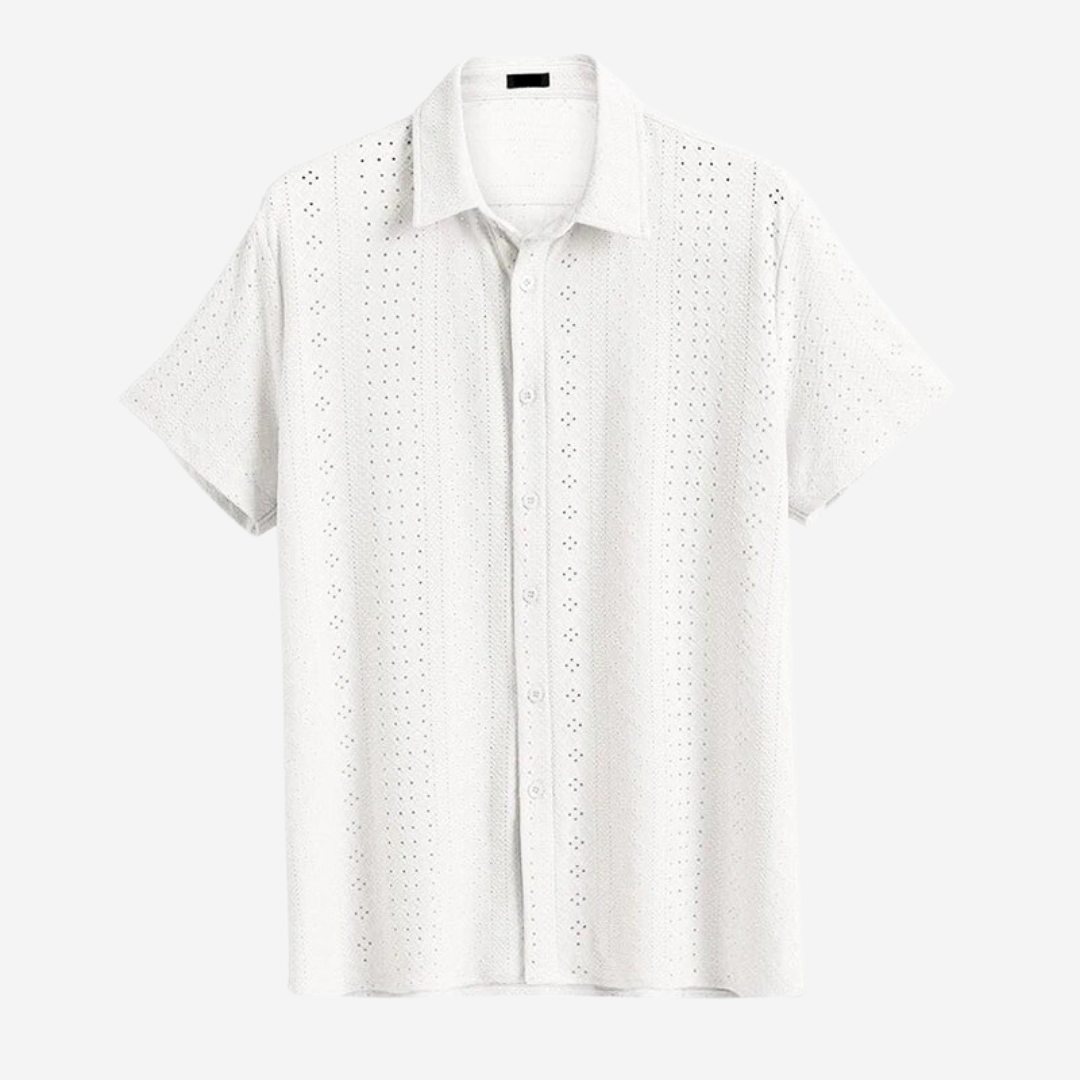 The relaxed silhouette and V-neck button detailing create a look that's both laid-back and polished. Whether you're exploring hidden coves or enjoying a seaside dinner, The Caspian Eyelet is your ideal companion for your summer wardrobe.