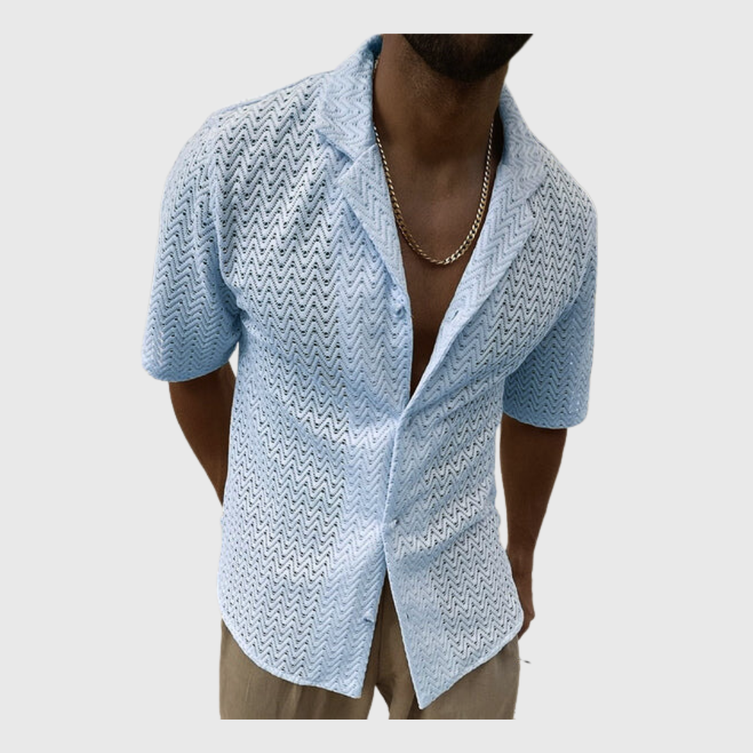 Discover the epitome of elegance and sophistication with the Tom Carter Grand Estate Short Sleeve Shirt. This striking men's button-up tee showcases a unique, mesmerizing wavy design, reflecting the refined taste of those who appreciate the finer things in life.