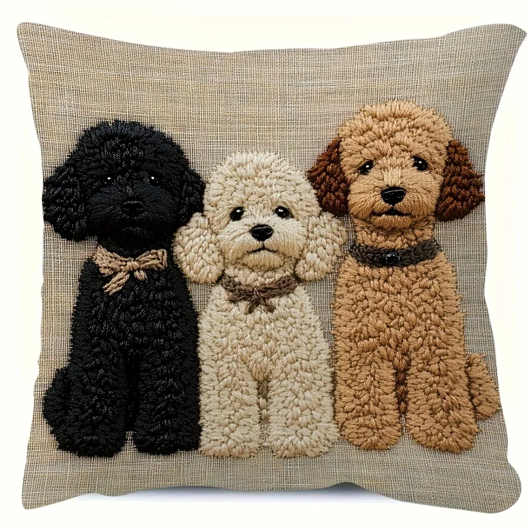 A gallery‑style print of three cuddly pups brings instant warmth to sofa or bed, finished on a textured linen‑blend for an elevated, homey look. The concealed zipper makes swapping inserts effortless while the durable fabric holds its shape wash after wash.