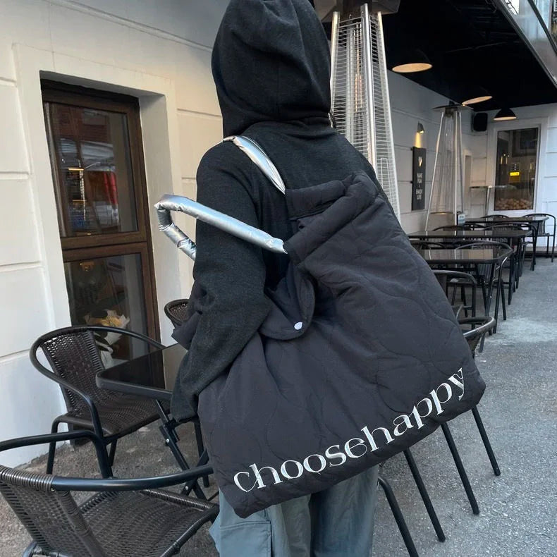 This stylish and spacious tote bag is designed for the modern woman who's always on the go. Crafted from durable nylon and featuring a chic embroidered message, this bag is perfect for work, school, or weekend adventures.