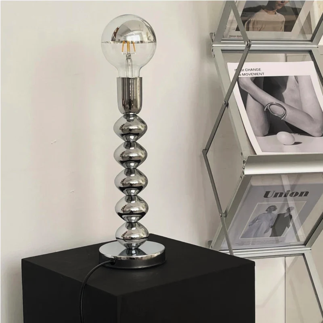 Unveiling a mesmerizing dance of light and shadow, the Cirrus Helix Table Lamp elevates any space. Its spiraling base, crafted from premium metals with a gleaming silver finish, reflects and amplifies the warm glow of an energy-efficient bulb, offering modern elegance and eco-friendly illumination in a compact, versatile design.