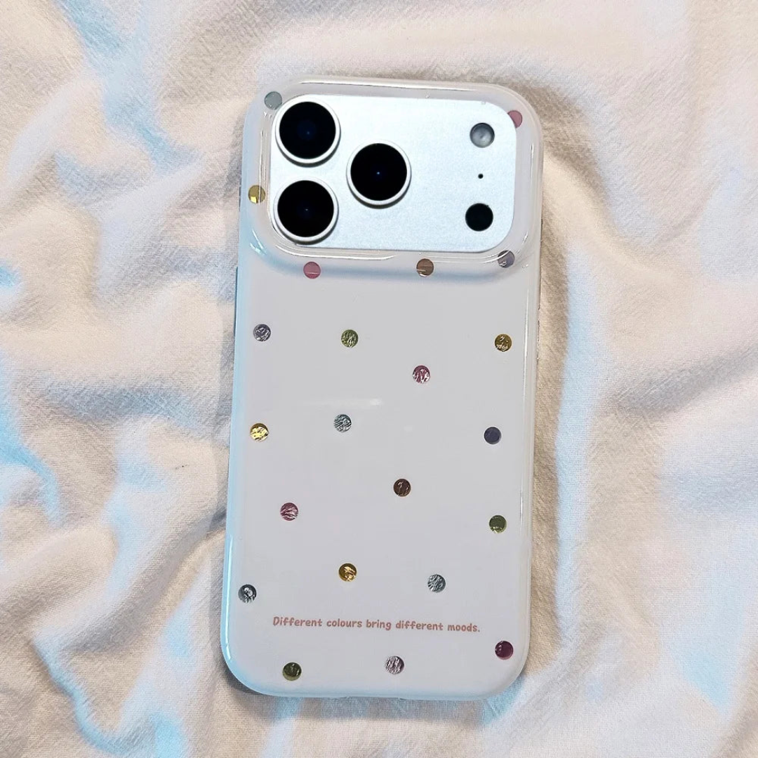 Soft pastel dots scattered across a glossy shell for subtle sparkle and movement. Lightweight protection designed for casual, decorative styling.