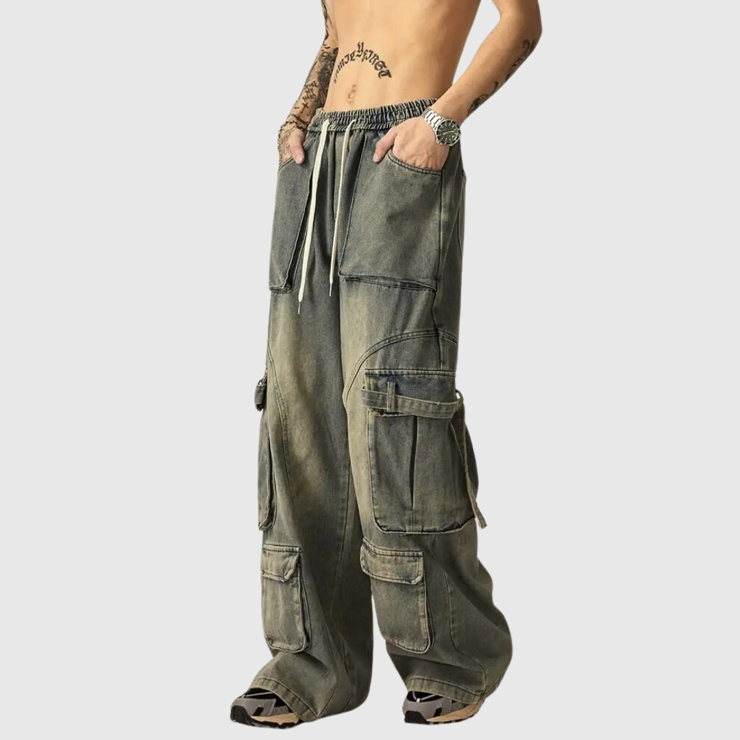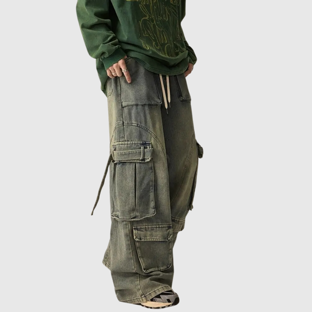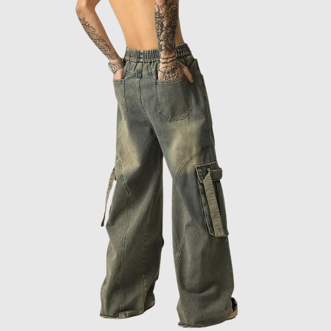 The faded green hue and loose, relaxed fit echo a military-inspired aesthetic, while the multitude of oversized cargo pockets deliver unmatched functionality. Low-slung and oversized, these pants are perfect for those who value comfort and want to make a statement.