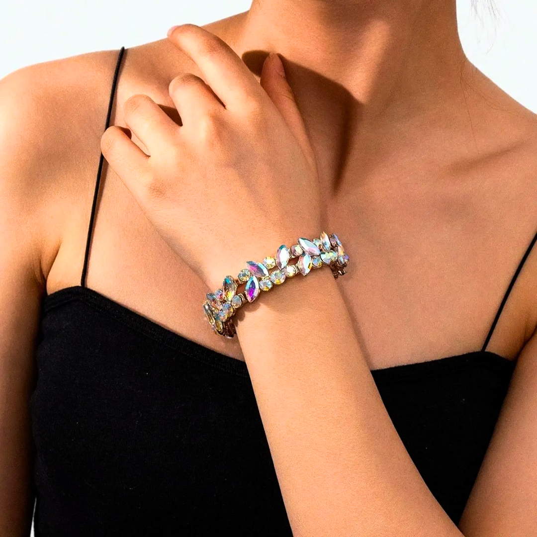 Add instant glam to any outfit with this dazzling bracelet. Multi-colored rhinestones catch the light from every angle, perfect for parties, weddings, or any time you want to shine!