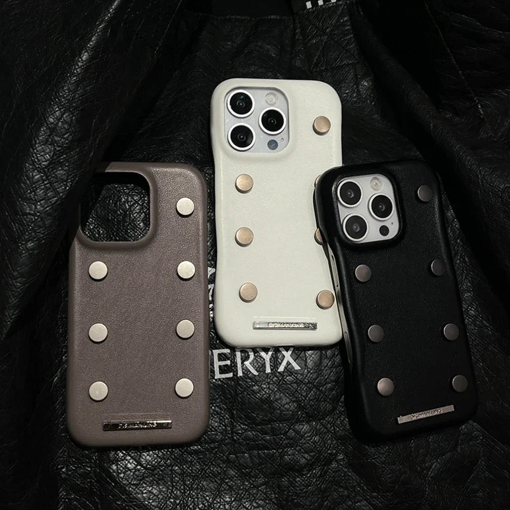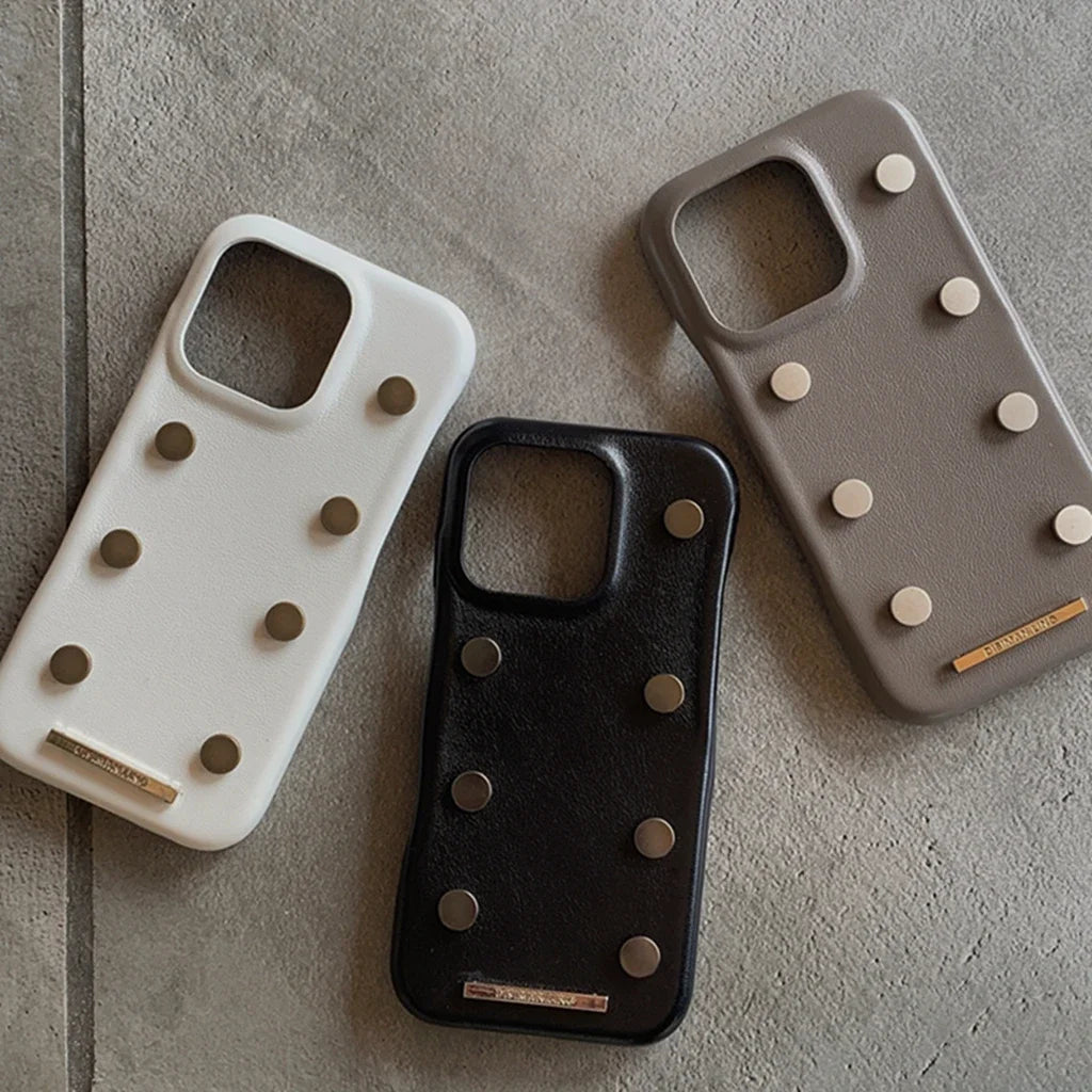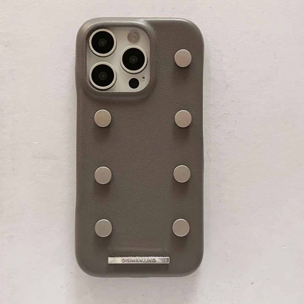 Pebbled leather is hand‑wrapped over a feather‑slim shock shell, creating a luxe tactile canvas. Satin‑brass dome studs and a discreet logo plaque add moto‑jacket edge while keeping the look runway refined.
