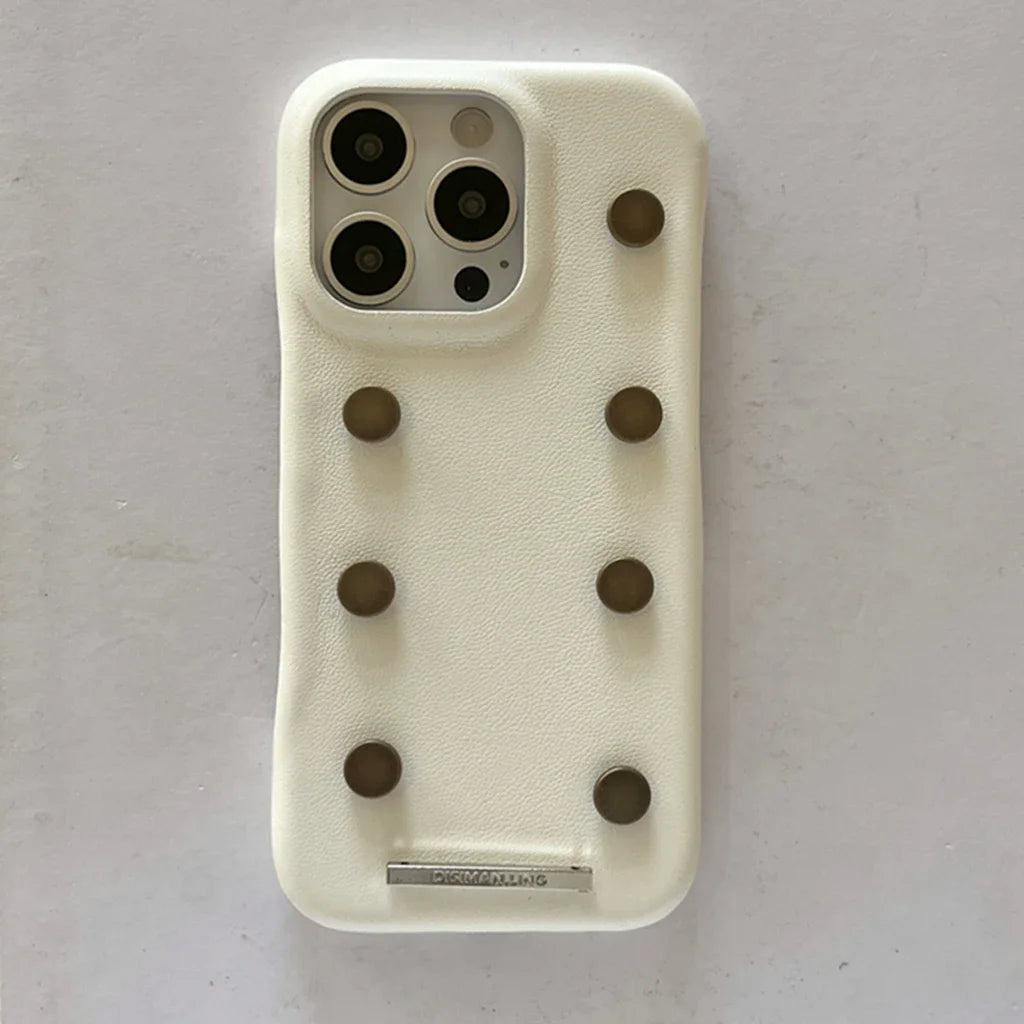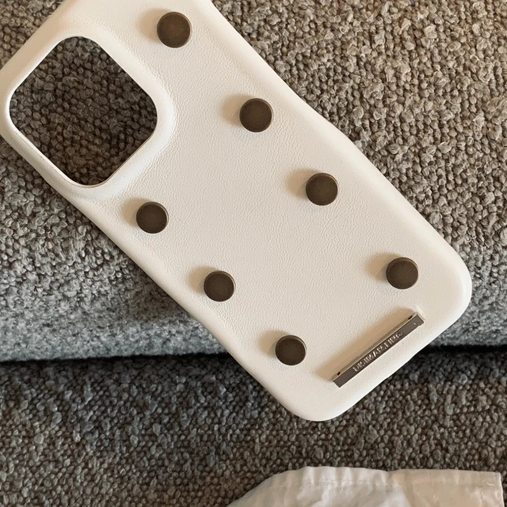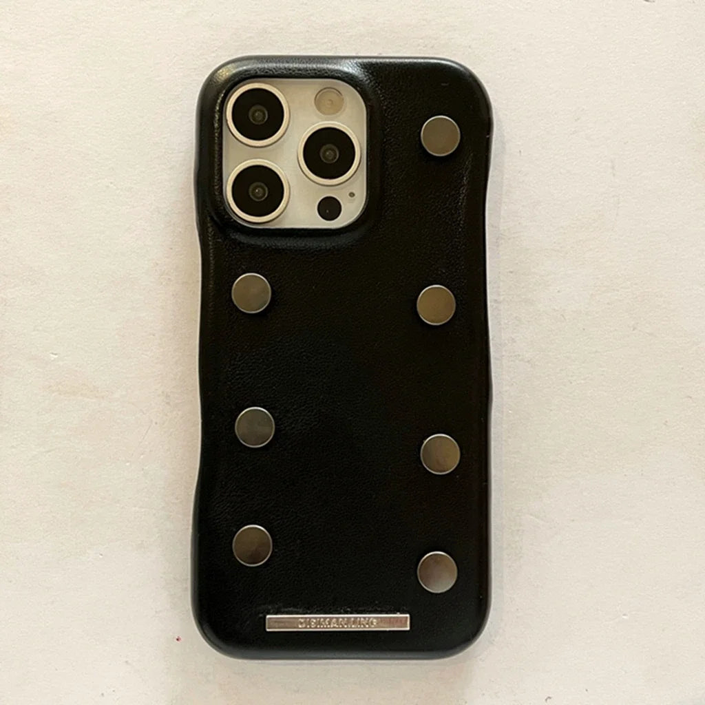 Pebbled leather is hand‑wrapped over a feather‑slim shock shell, creating a luxe tactile canvas. Satin‑brass dome studs and a discreet logo plaque add moto‑jacket edge while keeping the look runway refined.