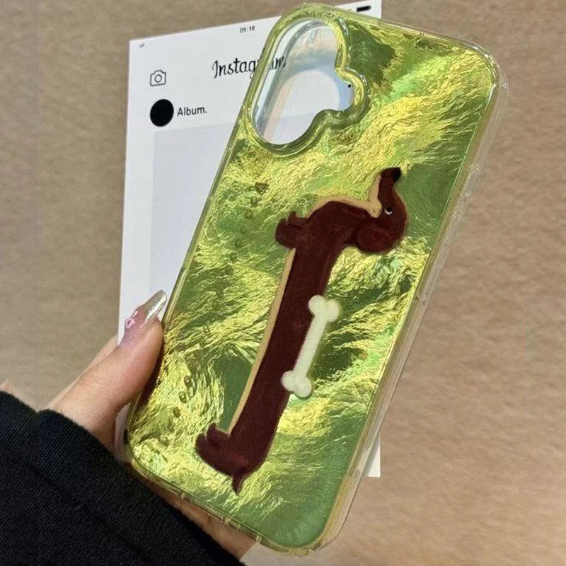 Step into playful luxury with a swirling vortex backdrop and a charming dachshund motif. Soft silicone guards your device with a sleek, shock-absorbent fit. The perfect fusion of artful Korean-inspired design and refined protection.