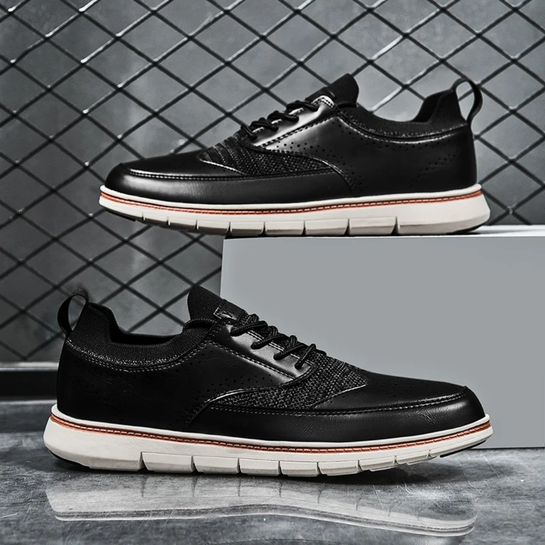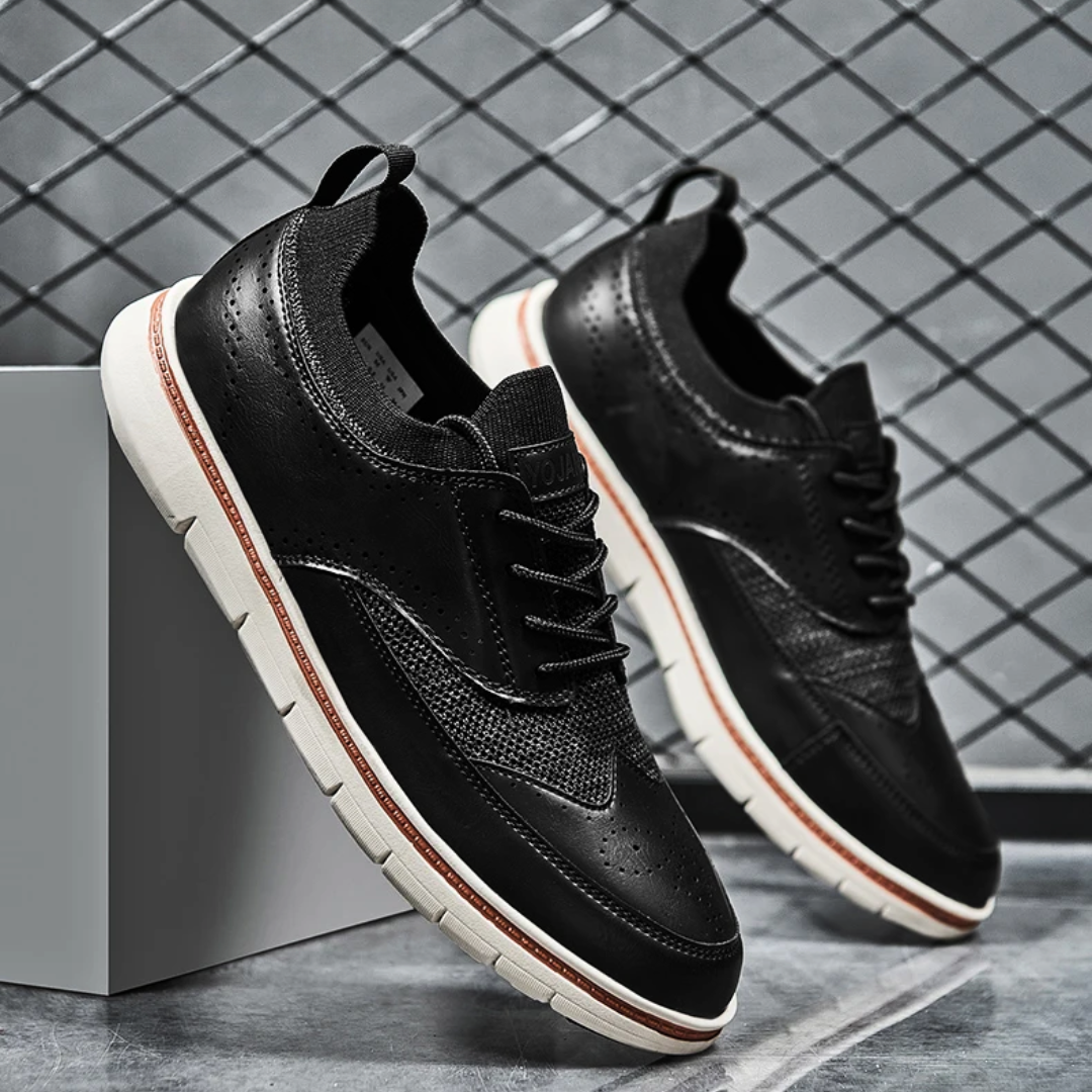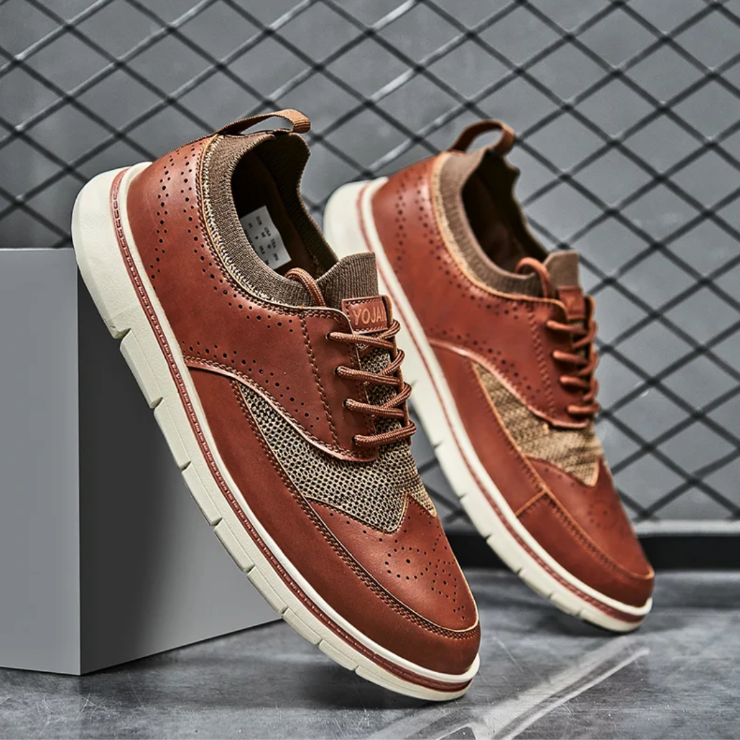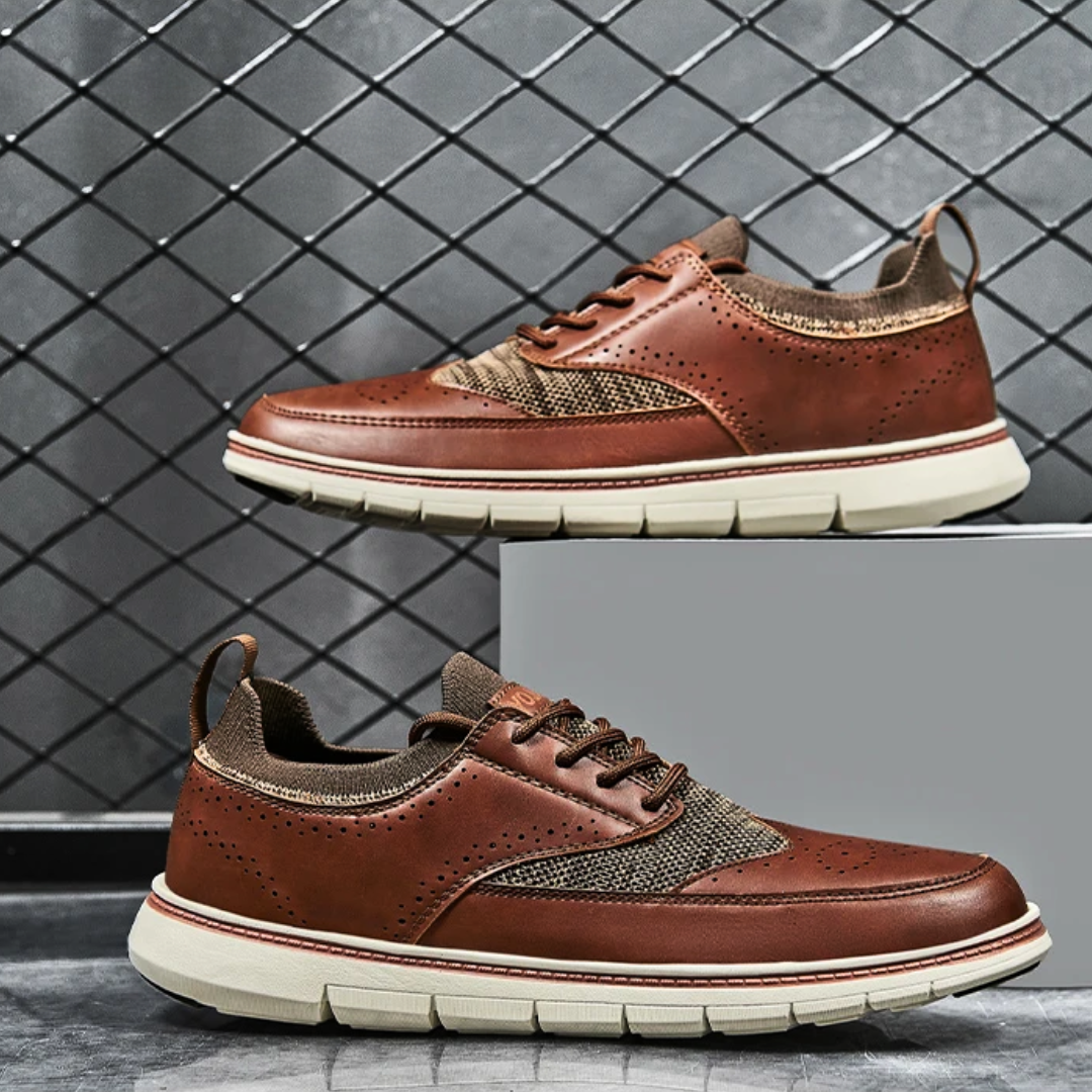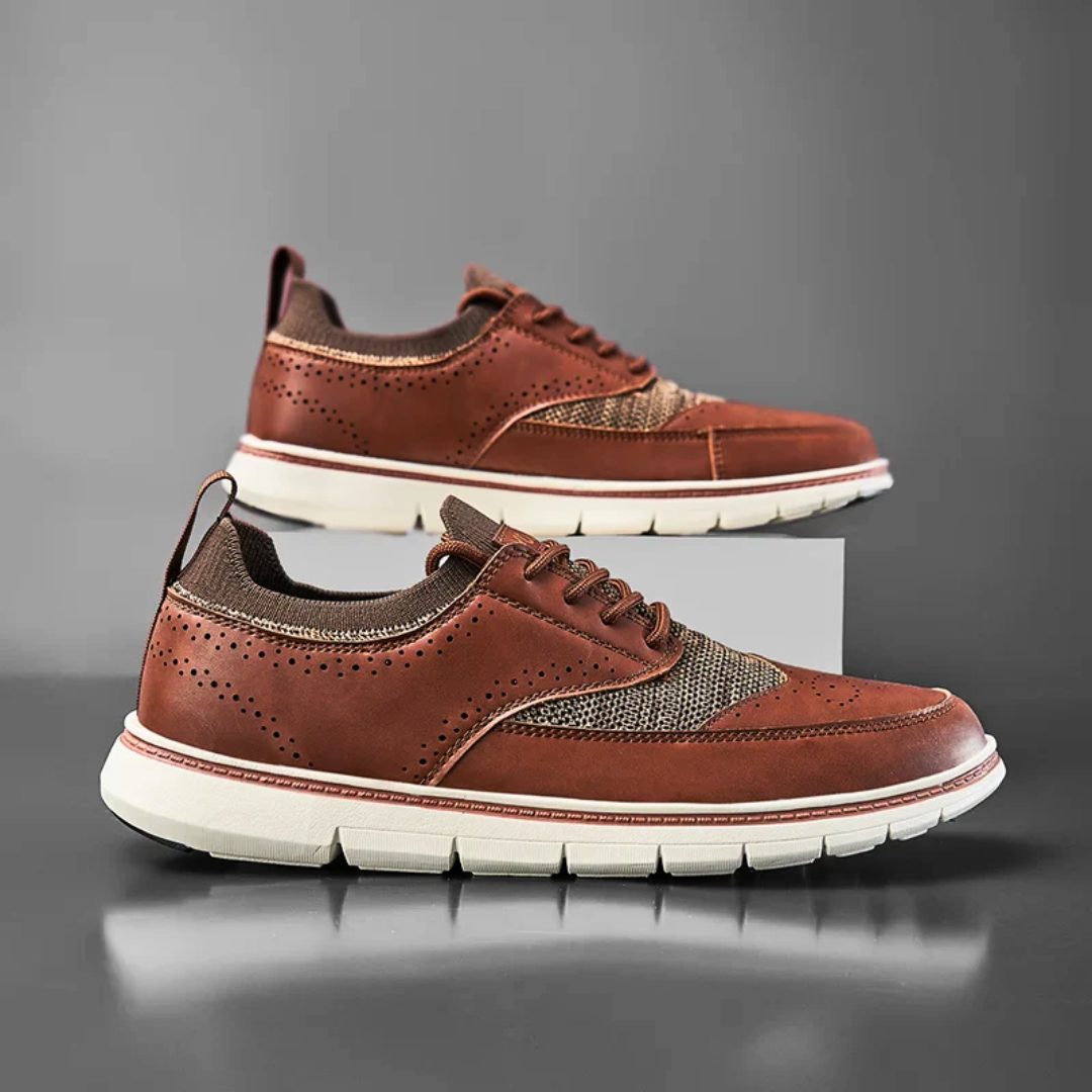 The burnished brown leather upper features a classic wingtip design, meticulously stitched for a touch of heritage. The sleek low-top silhouette keeps the look modern, while the durable, textured outsole ensures confident strides on any terrain.