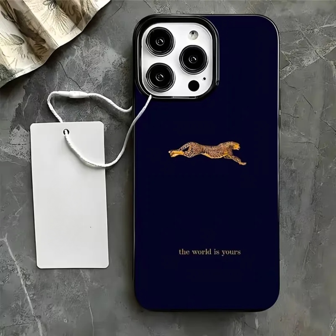 A deep navy base finished with a subtle leopard pattern for a bold but controlled look. Matte texture, clean structure, and built for daily protection.
