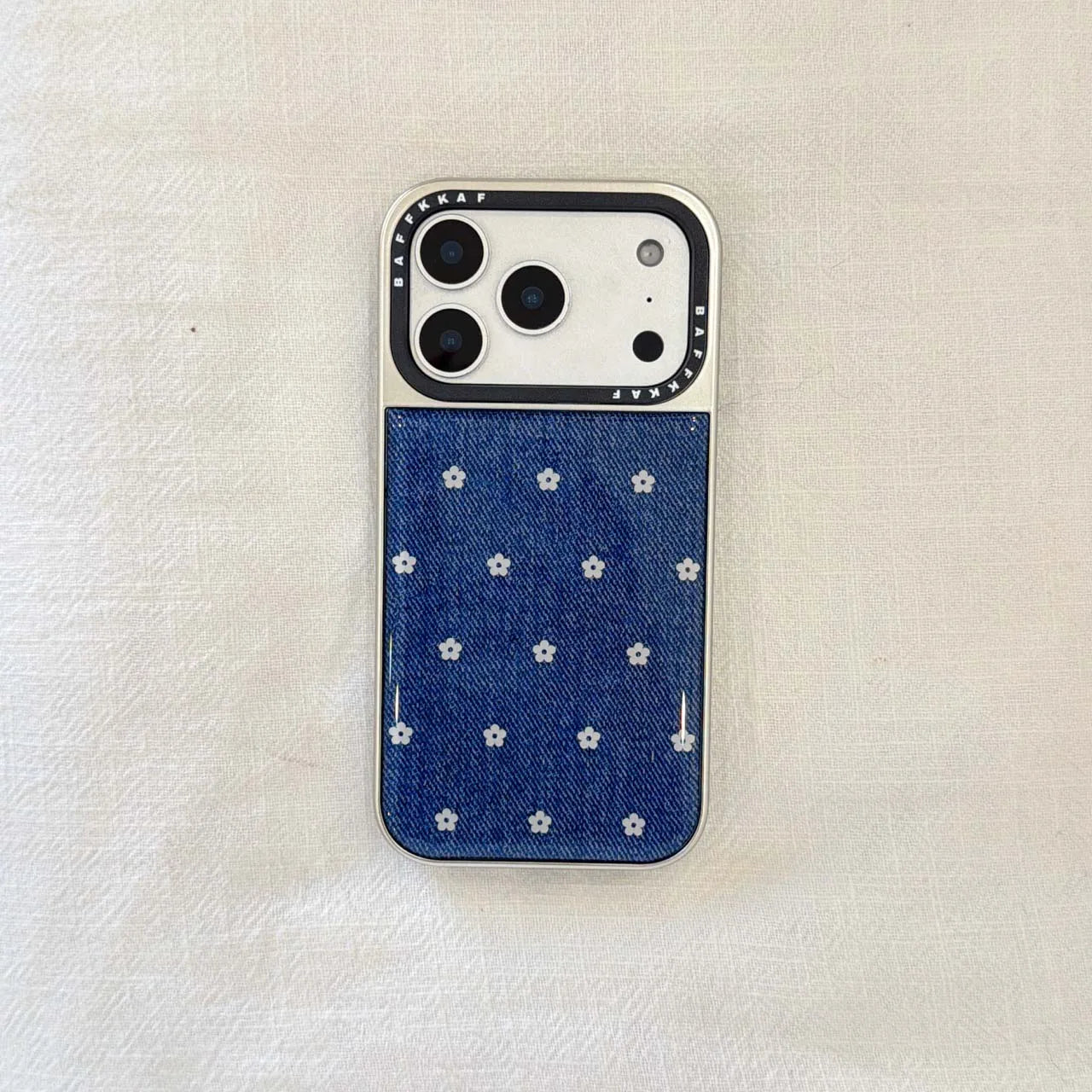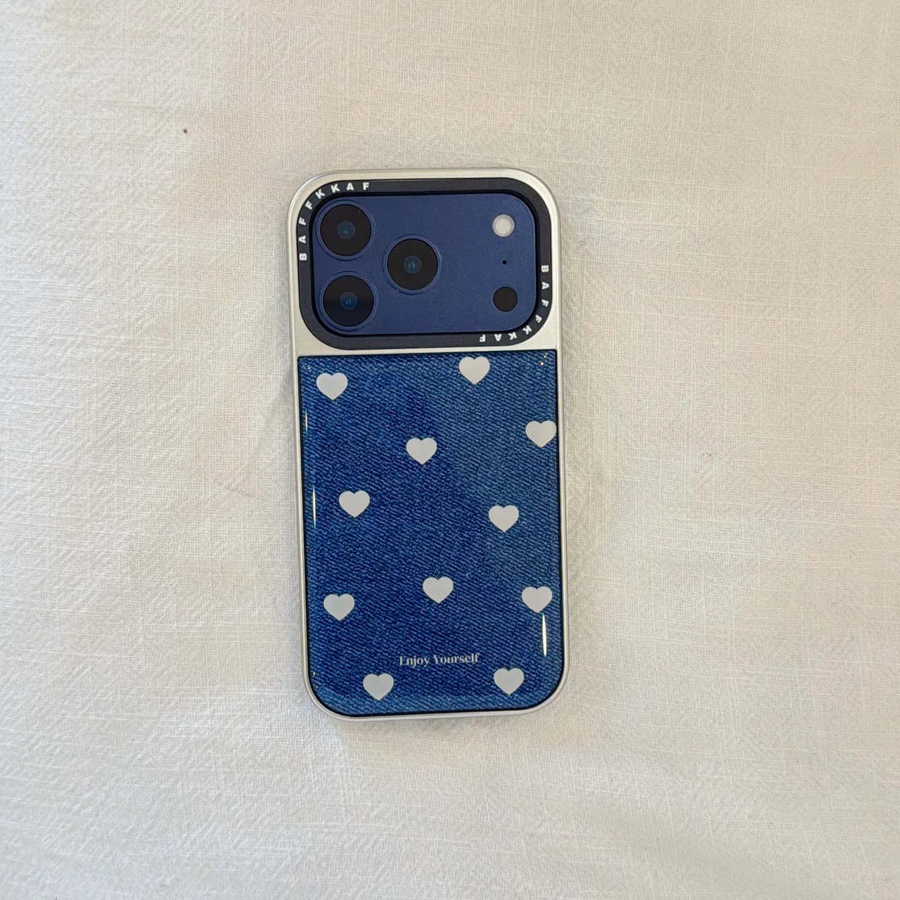 This case wraps your phone in a denim‑print back scattered with tiny stars and dots, giving it the look of a cute mini jean jacket. The raised bumper hugs the camera and edges, so you get a soft, playful style with everyday drop protection.